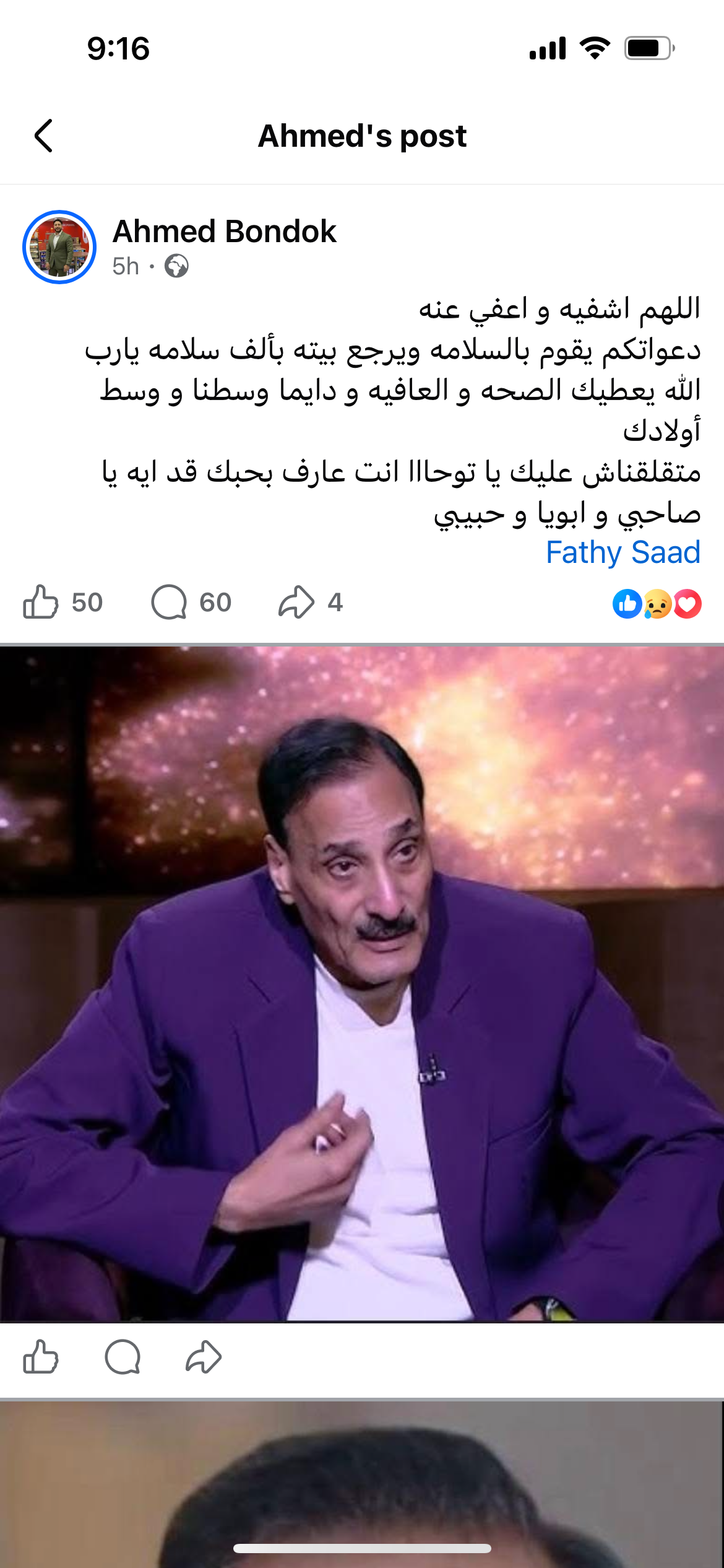 وقال أحمد بندق: اللهم اشفيه و اعفي عنه