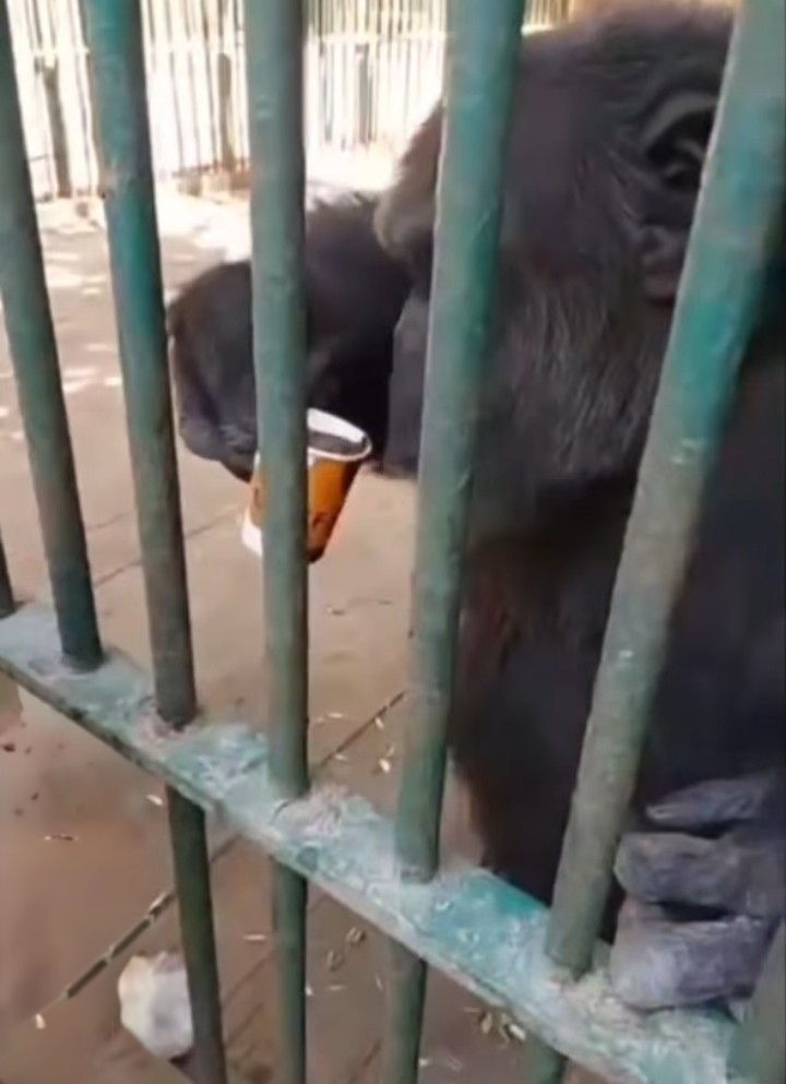 وظهر القرد وهو يتفاعل مع الحارس، عندما قدم له القهوة والمياه، وكانت المفاجأة في رد فعل «كوكو»، الذي كان ينفذ أوامر الحارس، وبدأ الشرب بأسلوب منظم، ما أثار إعجاب الزوار على مواقع التواصل.