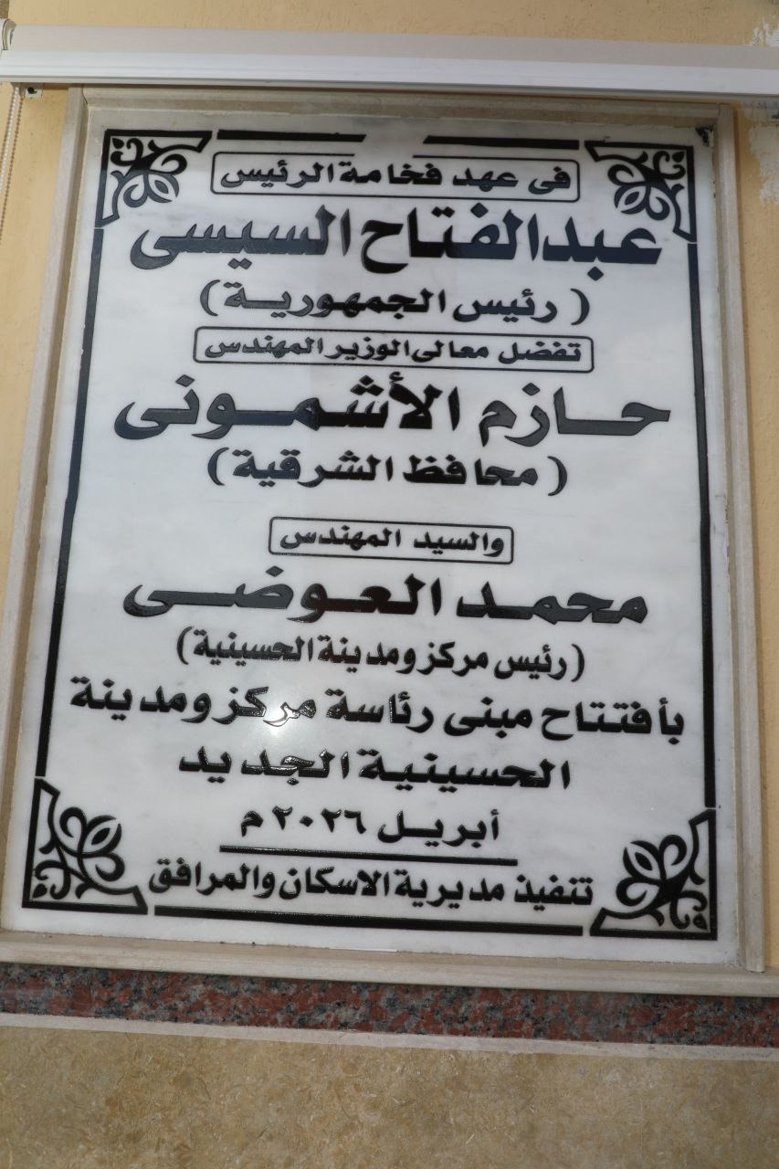 افتتح المهندس حازم الاشموني محافظ الشرقية مبنى رئاسة مركز ومدينة الحسينية الجديد، المُقام على مساحة 840 متراً، وبتكلفة إجمالية بلغت 22 مليون جنيهاً، والمُنفذ بمعرفة مديرية الإسكان والمرافق بالمحافظة.