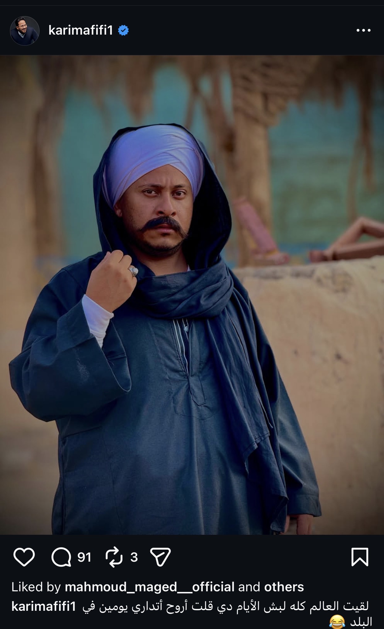 شارك الفنان كريم عفيفي متابعيه على حسابه الرسمي على إنستجرام، بوست ساخر يعكس نظرته للأحداث الجارية في المنطقة.