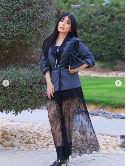 تألقت عبير صبري في الصور بإطلالة ملفتة، حيث ظهرت مرتدية فستان طويل اتسم الجزء السفلي من التصميم بالقماش الشفاف المصنوع من القماش الأسود أما الجزء العلوي كان يشبه البليزر.