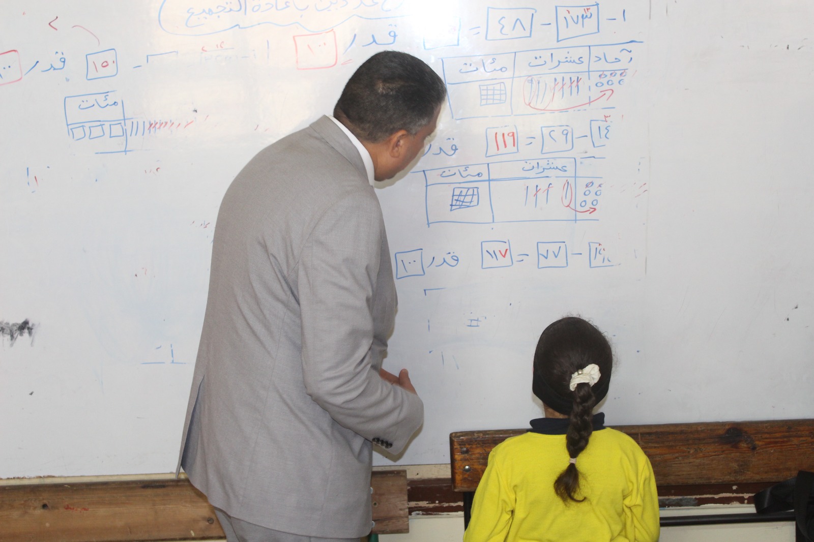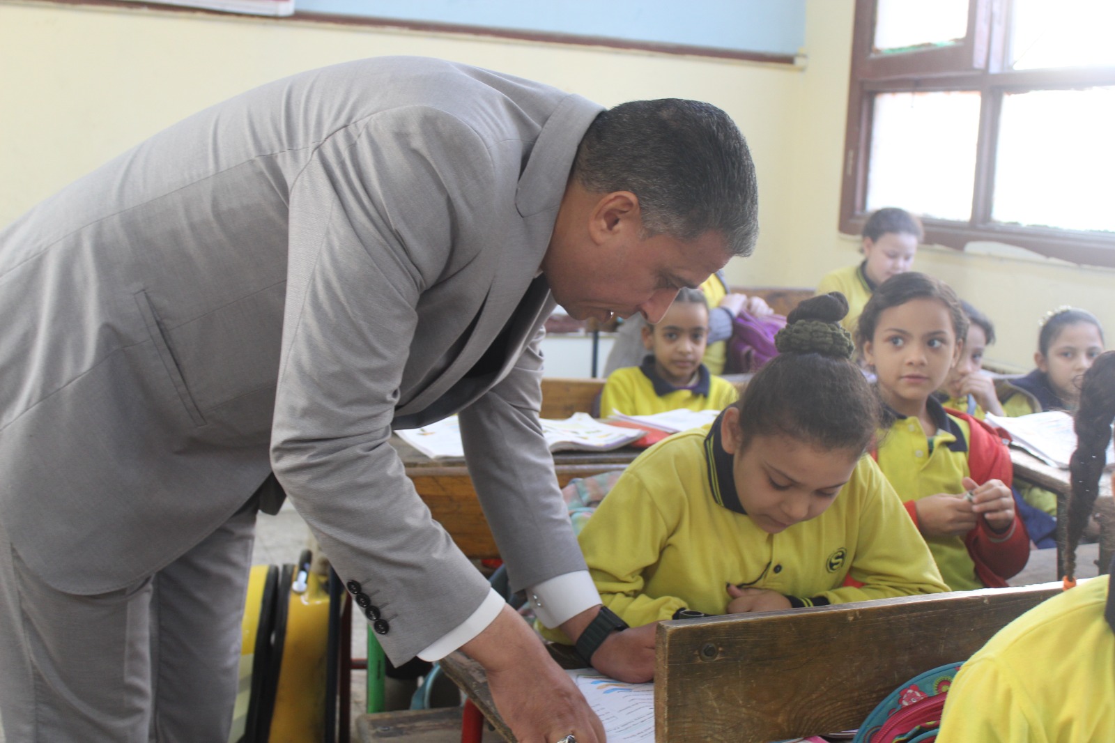 وخلال الزيارة، تابع "عطية" سجلات حضور وانصراف الطلاب والمعلمين، وتفقد الفصول الدراسية للتأكد من كثافة الحضور وتفعيل التقييمات الصفية، مشيداً بالنماذج الملتزمة وموجهاً بتذليل كافة العقبات التي تواجه سير اليوم الدراسي.