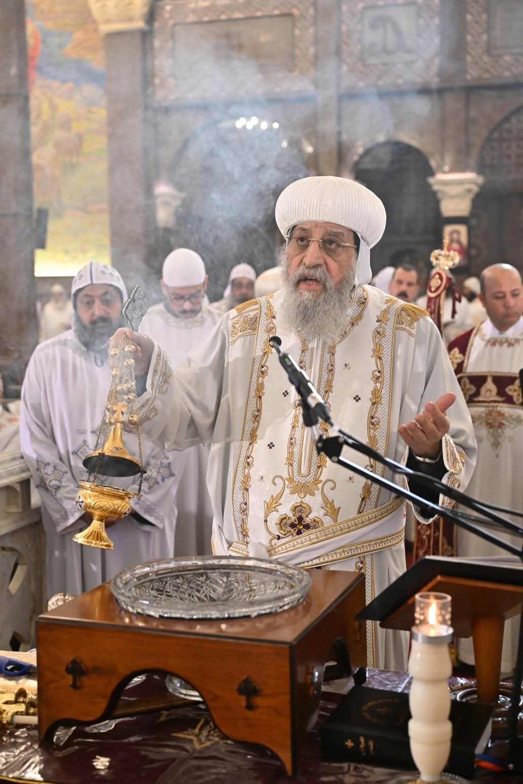 صلى قداسة البابا تواضروس الثاني، بابا الإسكندرية وبطريرك الكرازة المرقسية، لقان وقداس يوم الخميس الكبير (خميس العهد) صباح اليوم في دير الشهيد مارمينا العجائبي بمريوط، بالإسكندرية، بمشاركة نيافة الأنبا كيرلس آڤا مينا أسقف ورئيس الدير ومجمع رهبانه، وعدد من أبناء الكنيسة.