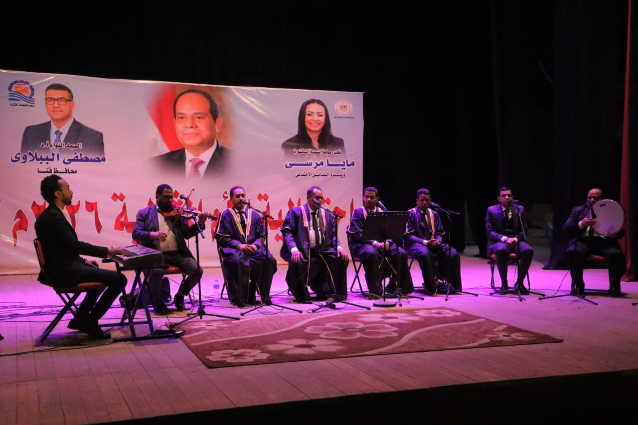 تضمنت فعاليات الحفل، فقرات فنية وإنشاد دينى، لفرقة قصر ثقافة قنا، تخللها عدد من الكلمات.