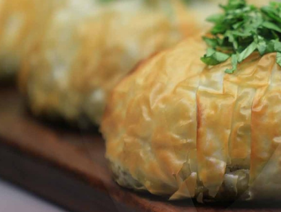 يضاف الحشو باردا على الجلاش ويغلق في بولة ويدهن بالزيت ويطهى بالفرن ويقدم.