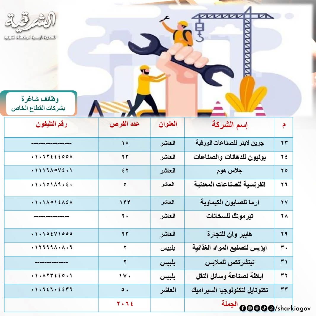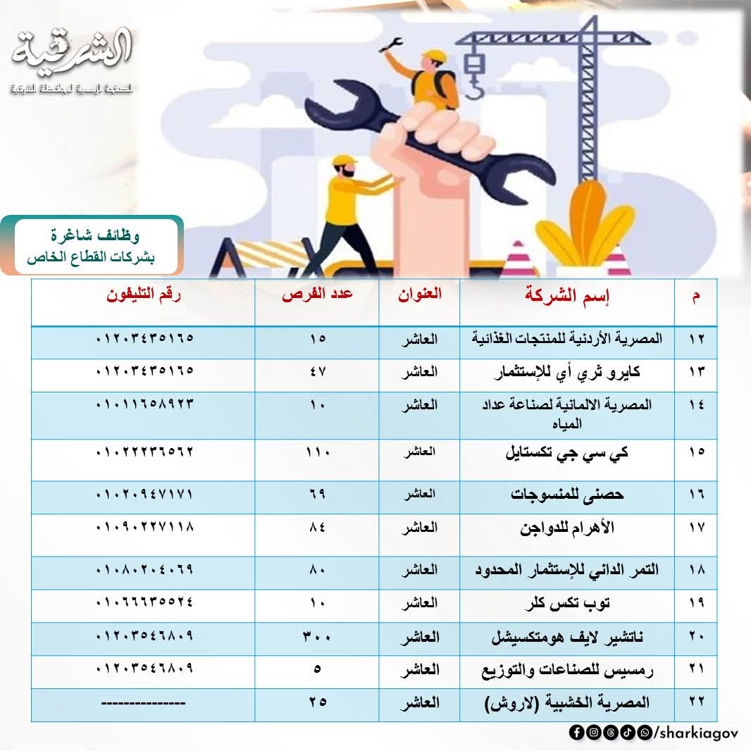 وفي هذا السياق أوضح أحمد عبد الهادي وكيل الوزارة العمل بالشرقية قيام الإدارة العامة لبحوث العمالة بالمديرية بالتواصل مع أصحاب المصانع والشركات بالقطاع الخاص لتوفير فرص عمل للشباب تناسب مؤهلاته وقدراته وإمكانياته، لافتاً أنه تم توفير ٢٠٦٤ وظيفة شاغرة بالقطاع الخاص بمركز فاقوس ومدينة العاشر من رمضان وبلبيس.