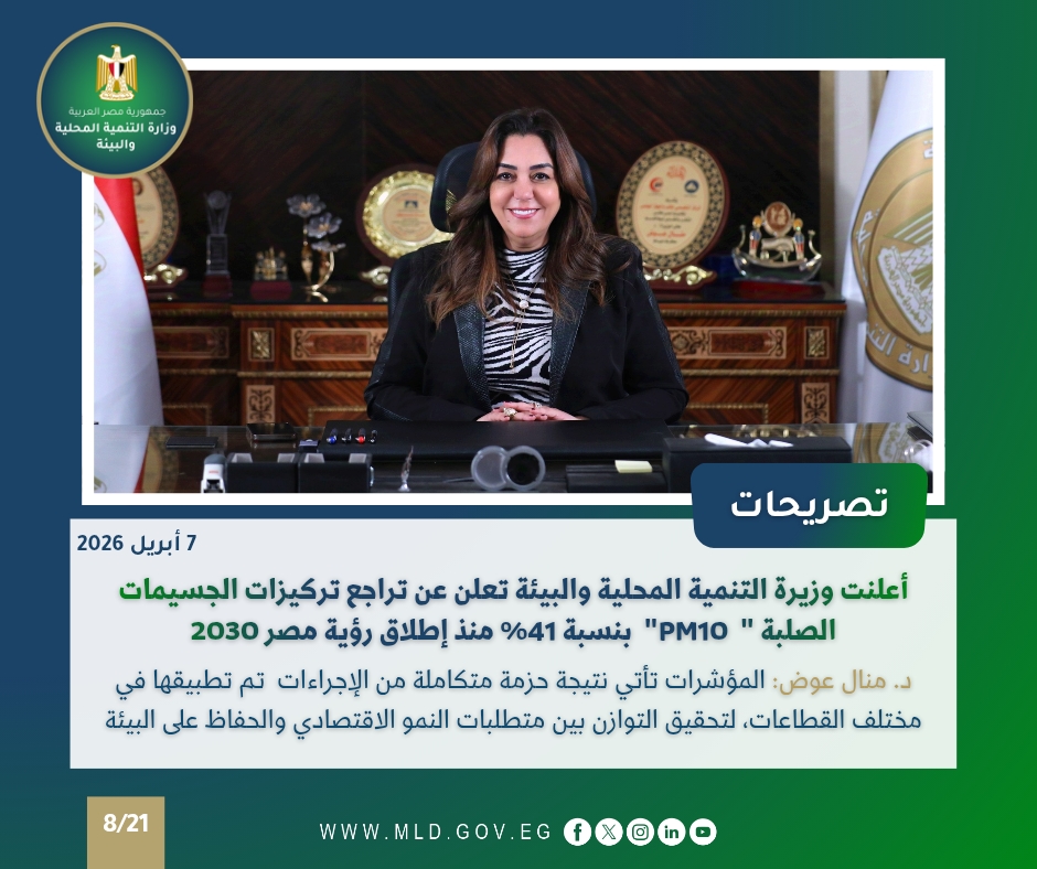 وأكدت الدكتورة منال عوض وزيرة التنمية المحلية والبيئة، أن الدولة المصرية حققت تقدم ملموس في تحسين جودة الهواء، في إطار تنفيذ الاستراتيجية الوطنية للتنمية المستدامة "رؤية مصر 2030"، مشيرة إلى أن نتائج الرصد البيئي الصادرة عن محطات الشبكة القومية لرصد ملوثات الهواء المحيط، والمنتشرة على مستوى الجمهورية، كشفت عن تحقيق تراجع ملحوظ في المتوسط السنوي لتركيزات الجسيمات الصلبة أقل من 10 ميكروميتر (PM10) بنسبة بلغت 41% خلال عام 2025 مقارنة بعام 2015، وهو عام الأساس لتدشين الاستراتيجية.