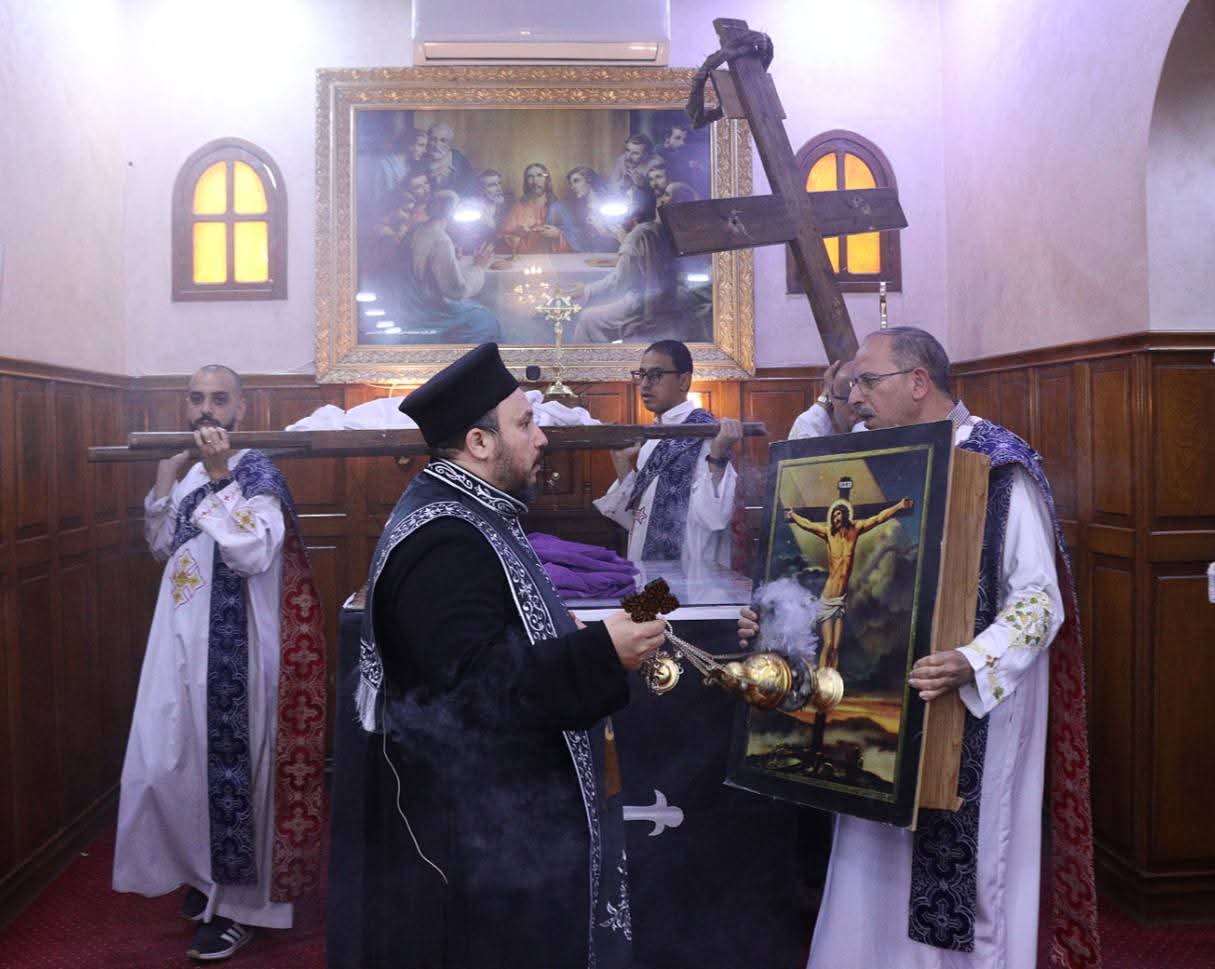 ترأس الصلوات الأب عمانوئيل صبحي، راعي الكنيسة الذي ألقى تأملًا روحيًا للحاضرين بعنوان "صمت الله". وفي نهاية الصلاة، أقيم "تطواف دفن المسيح"، حيث تم إنزال الرب يسوع المصلوب عن خشبة الصليب المقدسة، ولفه بكفن، وتطييبه بالحنوط، ووضعه داخل القبر.