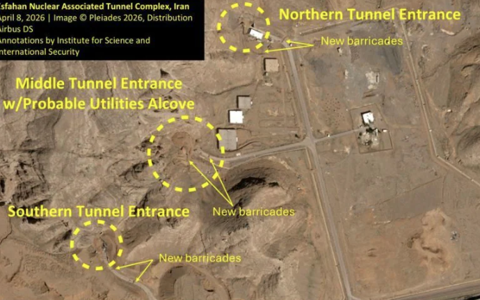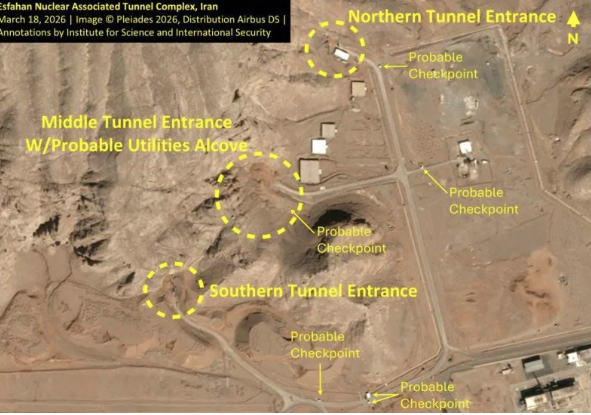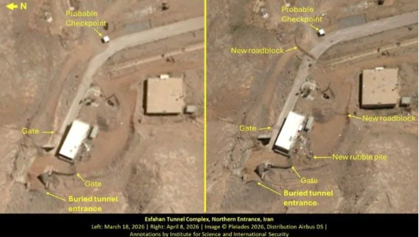 وبحسب صور الأقمار الصناعية؛ أغلق النظام الإيراني مداخل الأنفاق الثلاثة في أصفهان بسواتر ترابية وأسوار وأكوام من الأنقاض.