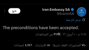 أعلنت سفارة إيران لدي واشنطن قبول الشروط المسبقة والتي أعلن عنها النظام الإيراني لقبول المفاوضات مع الجانب الأمريكي في إسلام آباد .