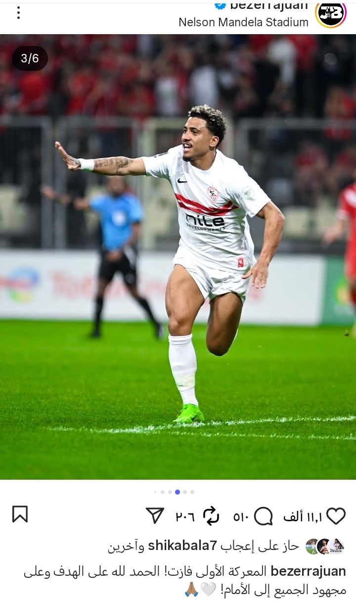وكتب خوان بيزيرا نجم الزمالك عبر حسابه الشخصي على انستجرام:"المعركة الاولى انتهت الحمد لله على الهدف ومجهود الجميع والى الامام"