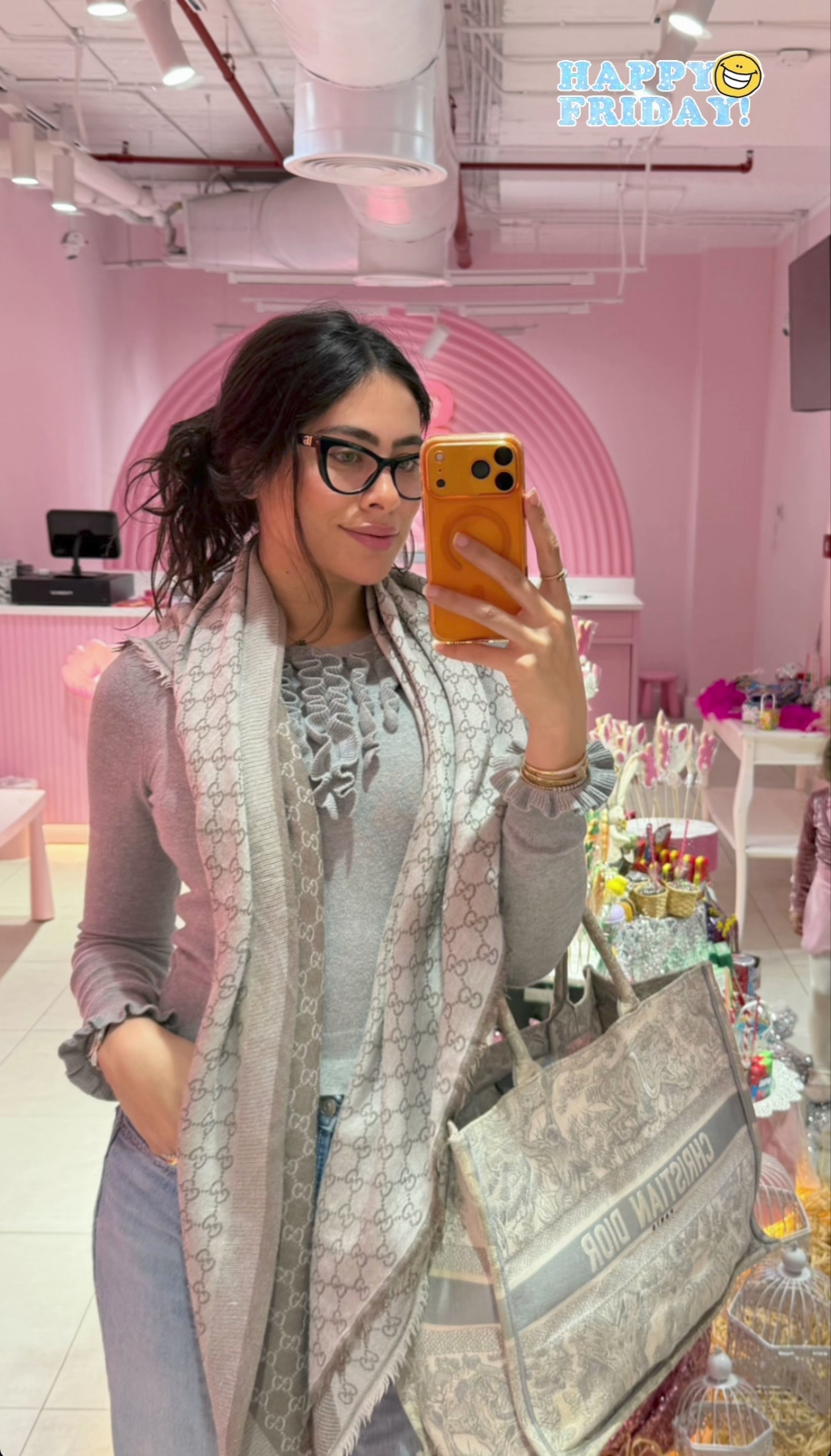 وظهرت هاجر أحمد ، مرتديه بنطال جينز كاجوال باللون الازرق الفاتح ، ونسقت معه توب بسيط باللون الرمادي ، كما أكملت إطلالتها بسكارف بسيطه لإكمال اللوك.