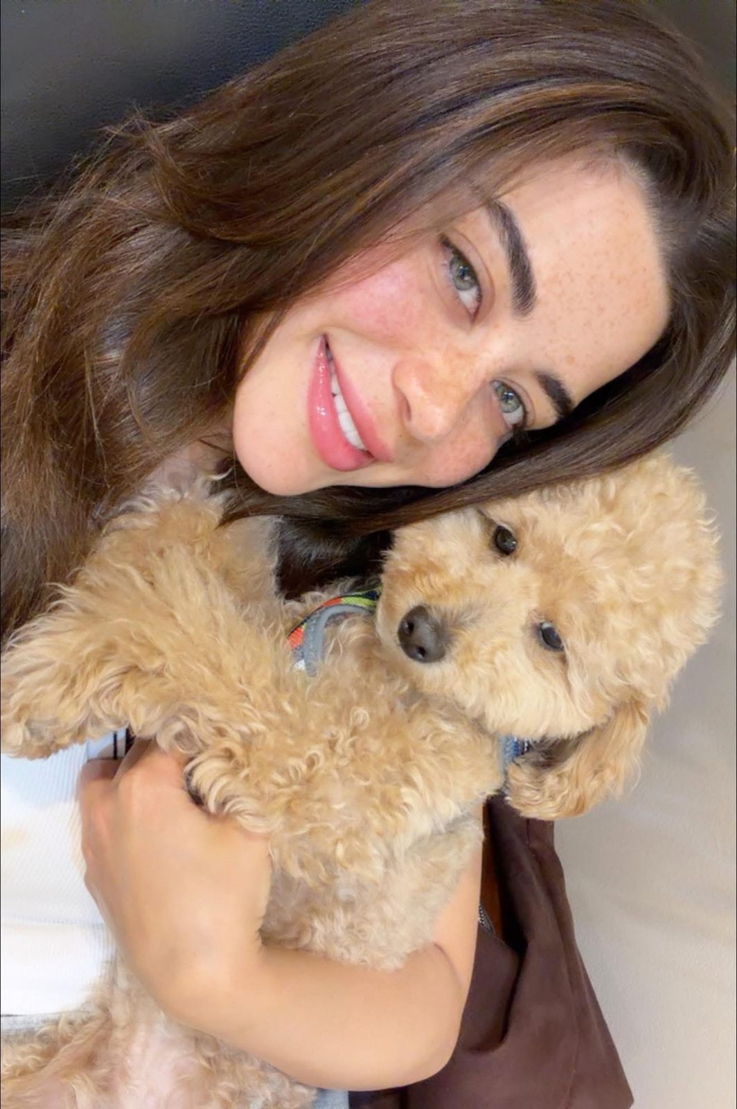 وخطفت يارا السكري الأنظار بلوك كاجوال وبدون ميك اب واعتمدت على جمالها الطبيعي، وظهرت محتضنة كلبها.