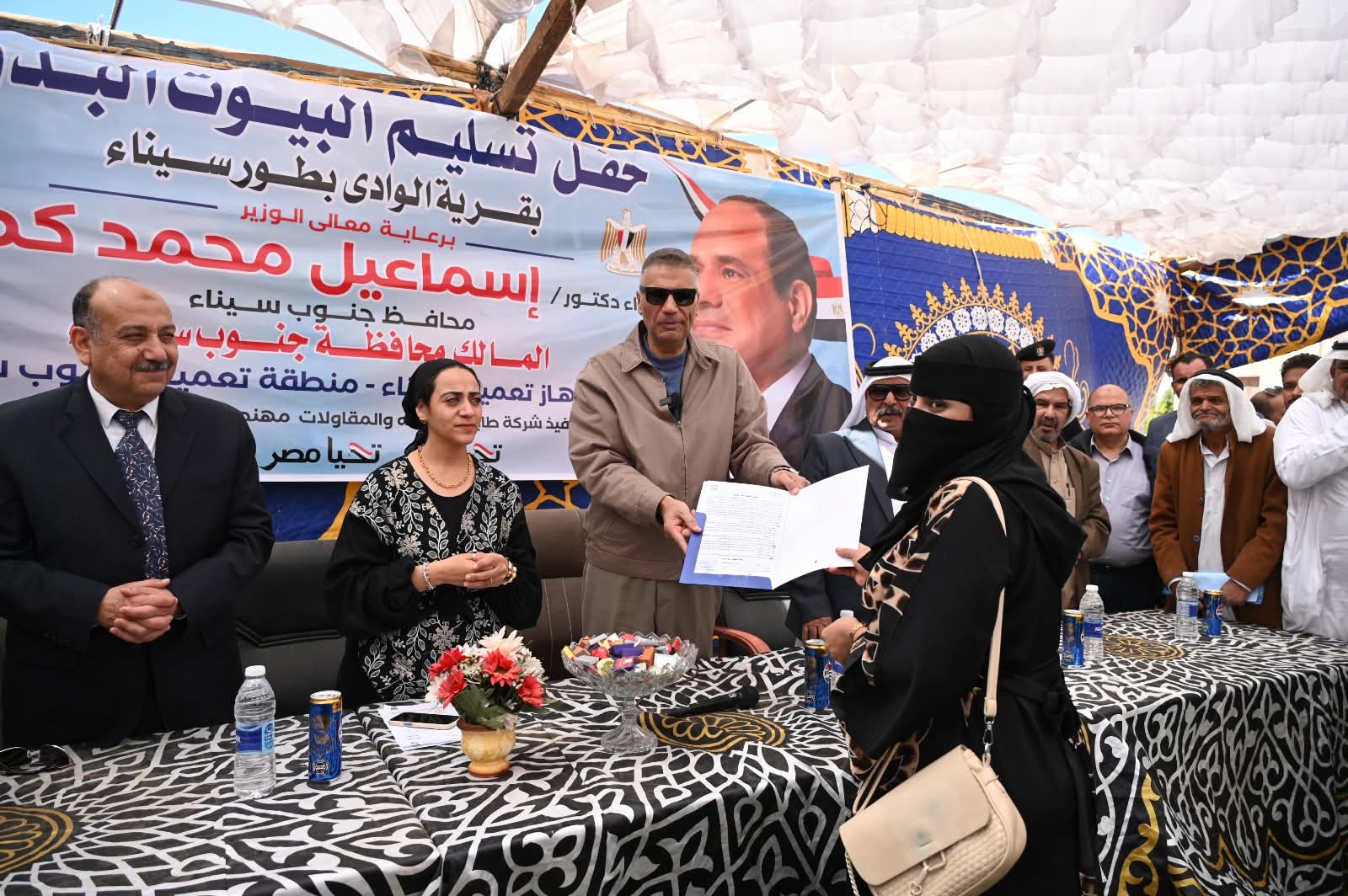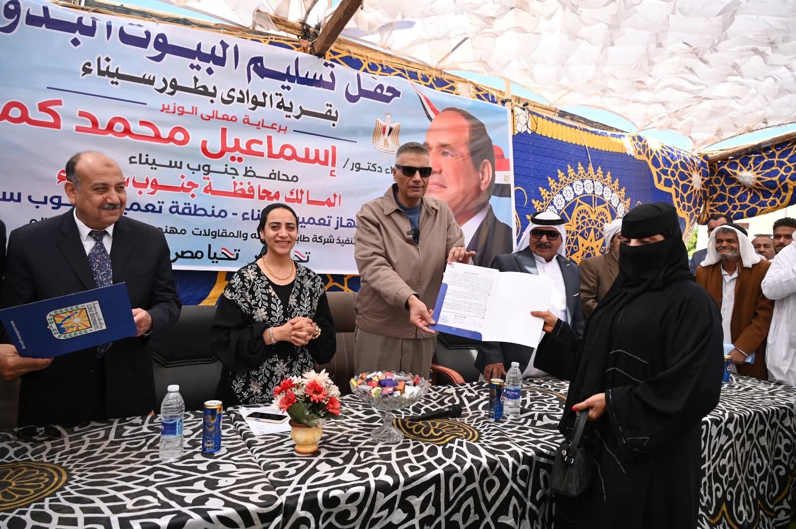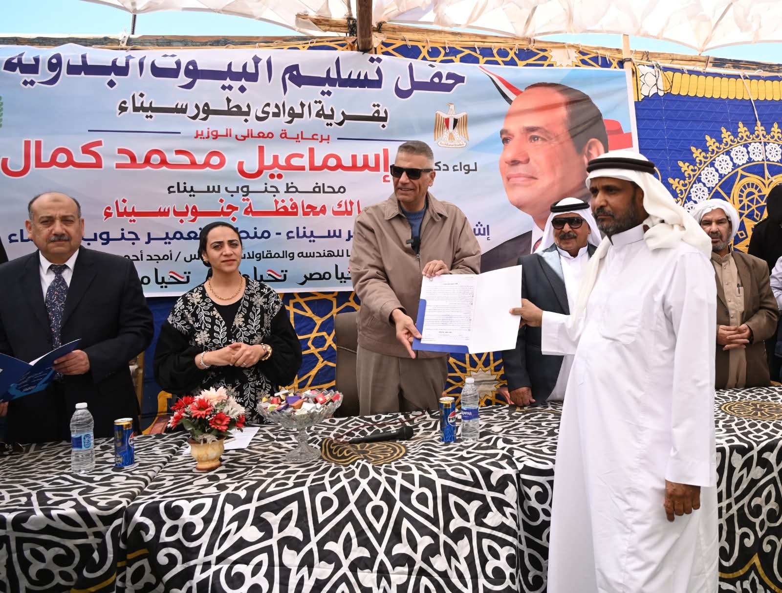 سلّم اللواء الدكتور إسماعيل كمال، محافظ جنوب سيناء، عقود المنازل البدوية للمستحقين بقرية وادي الطور، وذلك في إطار توجيهات القيادة السياسية بالاهتمام بتوفير سكن كريم للمواطنين، وخلال جولة تفقدية لمتابعة مشروع الإسكان البدوي بالمنطقة.