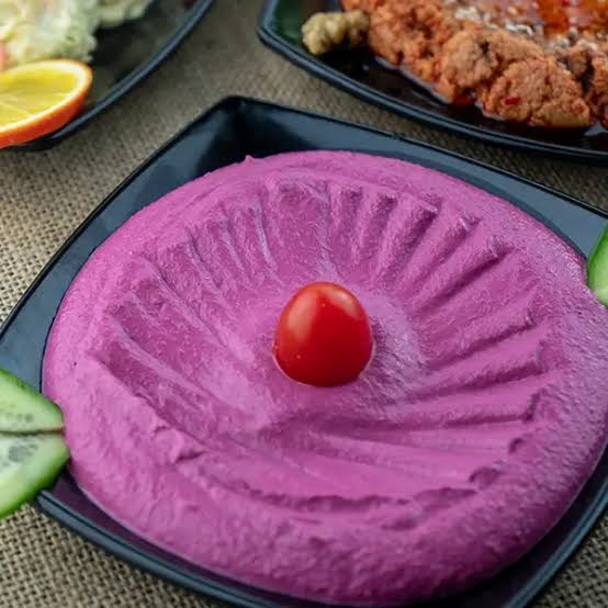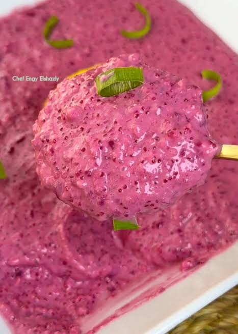 ـ يُضاف البنجر المسلوق إلى الخليط، ويُخفق مرة أخرى حتى يتجانس تمامًا، ويأخذ الخليط اللون الوردي المميز.