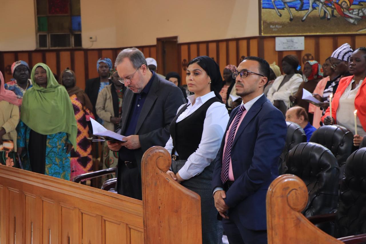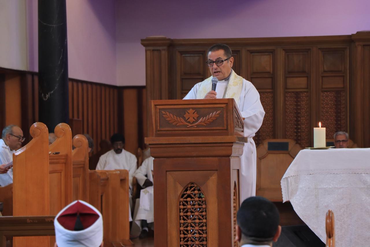 ضمن طقوس قداس العيد، دعا المطران جميع المؤمنين للبدء في صلاة الاستعداد بعد أن رنم كورال الكاتدرائية "المسيح اليوم قام"