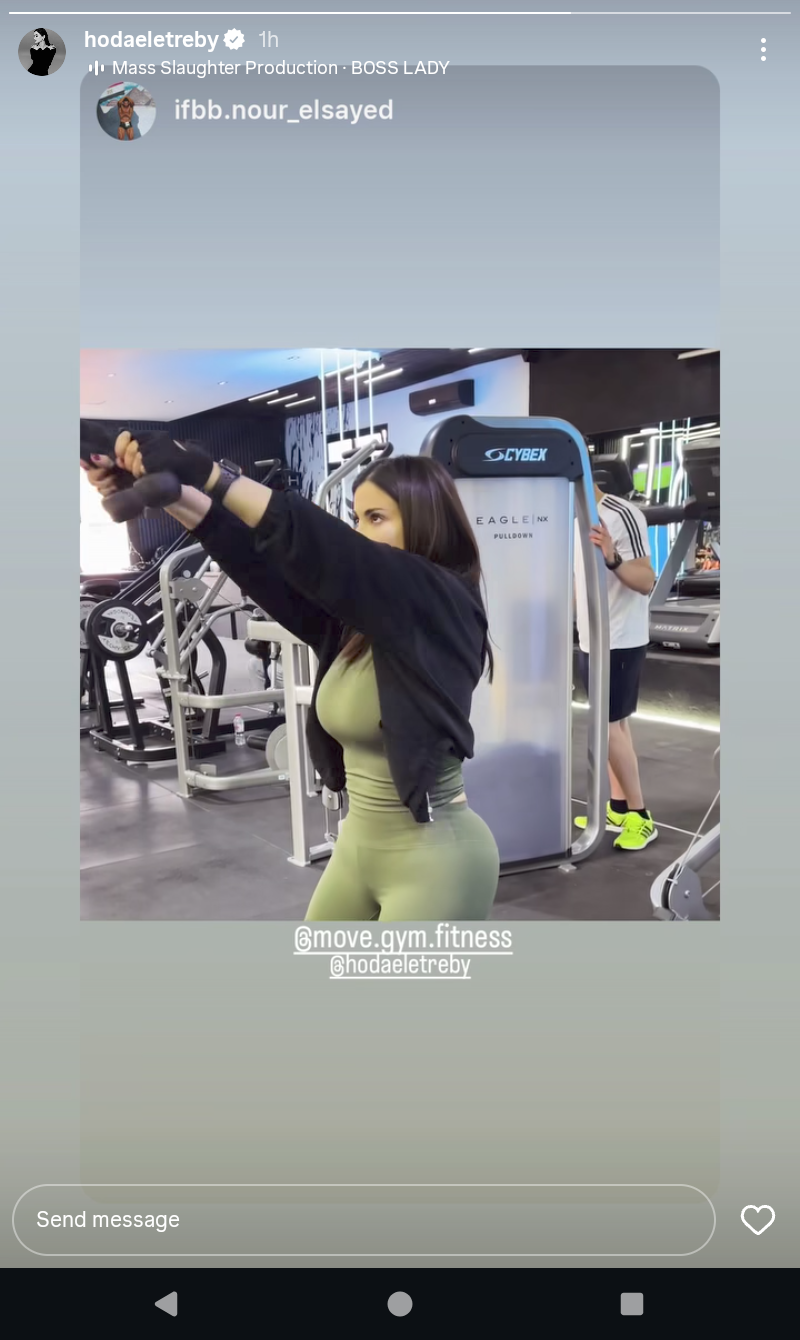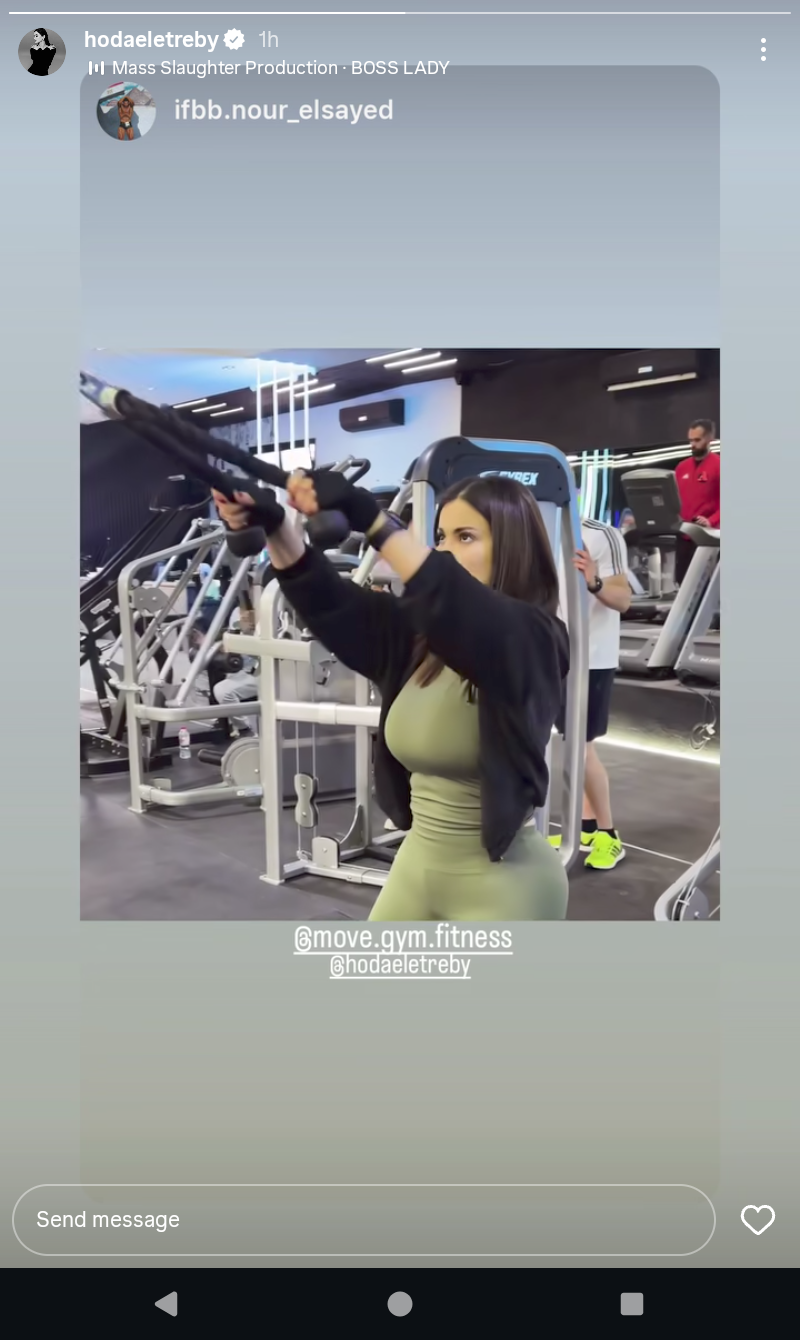 شاركت الفنانة هدى الإتربي صورة حديثة لها من داخل إحدى صالات الألعاب الرياضية، بعد أن أعلنت خطواتها في عالم اللياقة البدنية.
