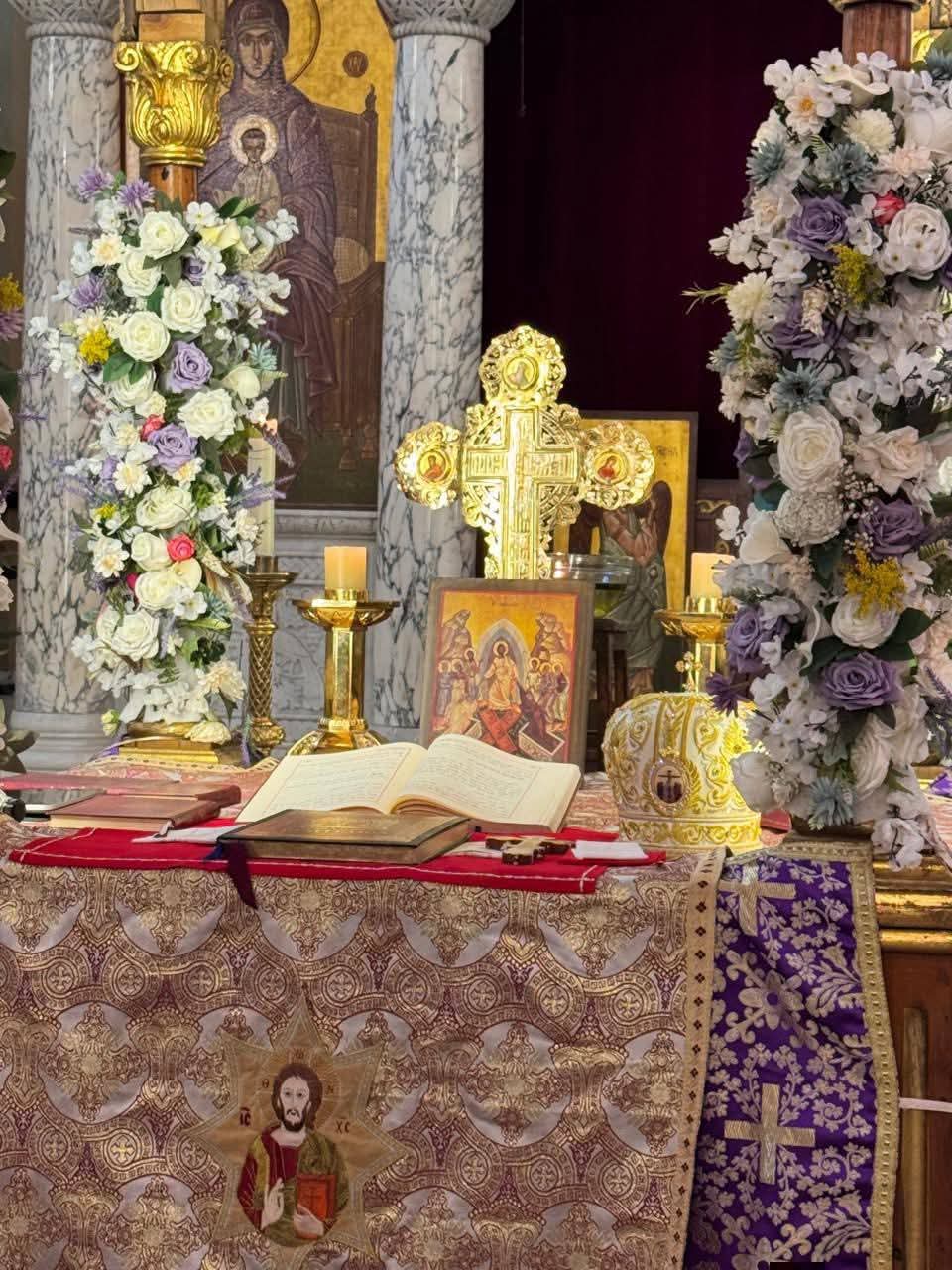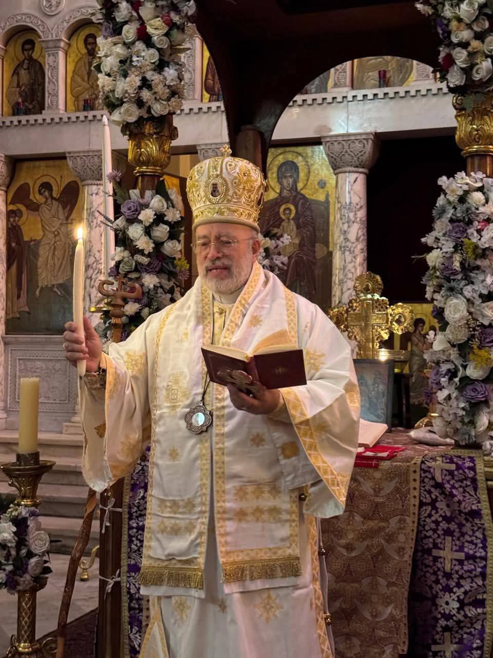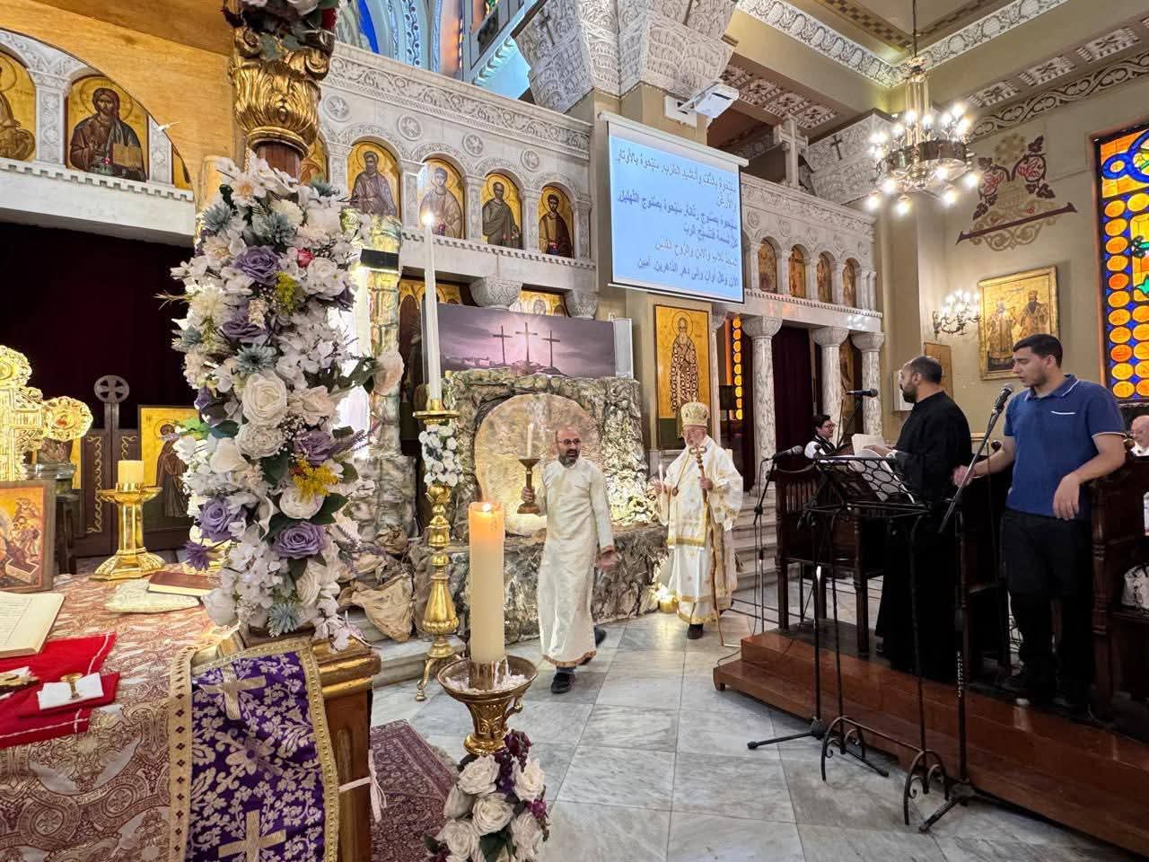 شارك في الصلاة الأرشمنديت بيو فرح، راعي الكاتدرائية، حيث قام سيادة المطران بتقديس النور، ونثر أوراق الغار بالكنيسة، كما رتل الخورس "قم يا الله واقض في الأرض".