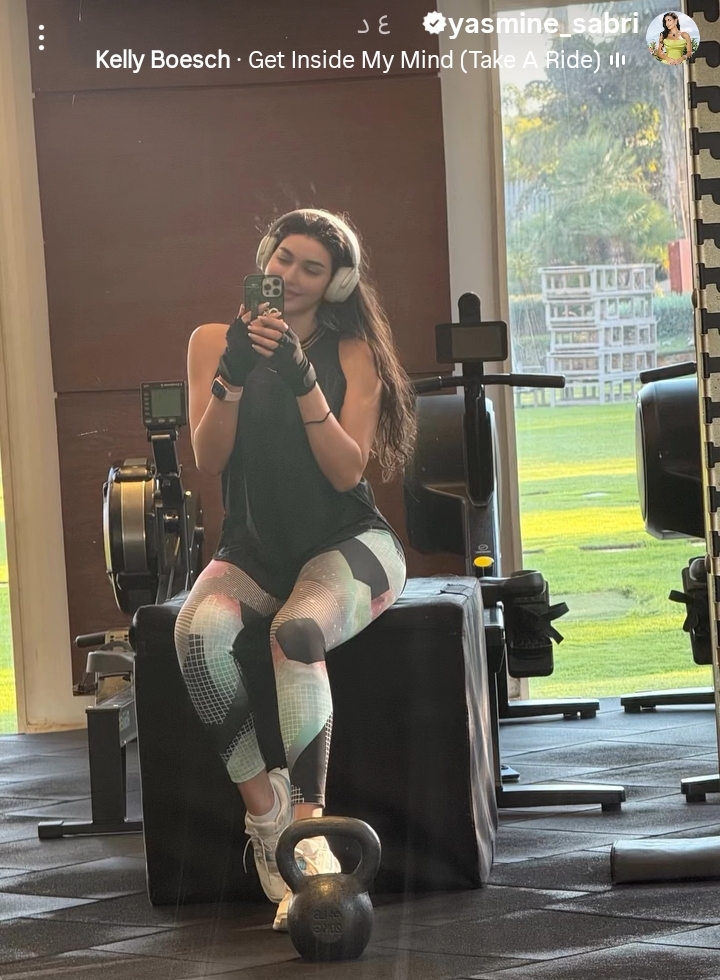 وظهرت ياسمين صبري في الصورة من داخل صالة الألعاب الرياضية، باطلالة رياضية جذابة وملفتة أبرزت رشاقتها، ونالت الصورة إعجاب متابعيها.