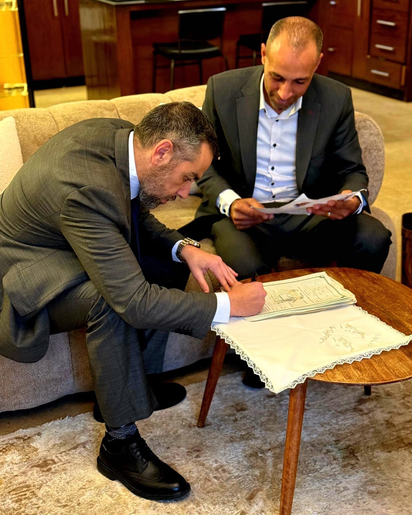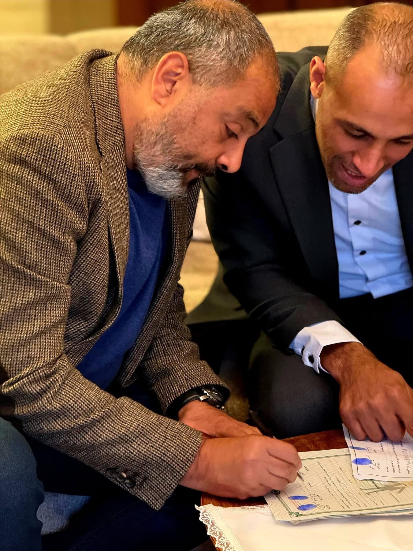 وعلّق عمرو حسن علي الصور عبر صفحته الرسمية على موقع “فيسبوك”: “لقطات أولى من كتب كتاب الشاعر عمرو حسن أمس 10 أبريل”.