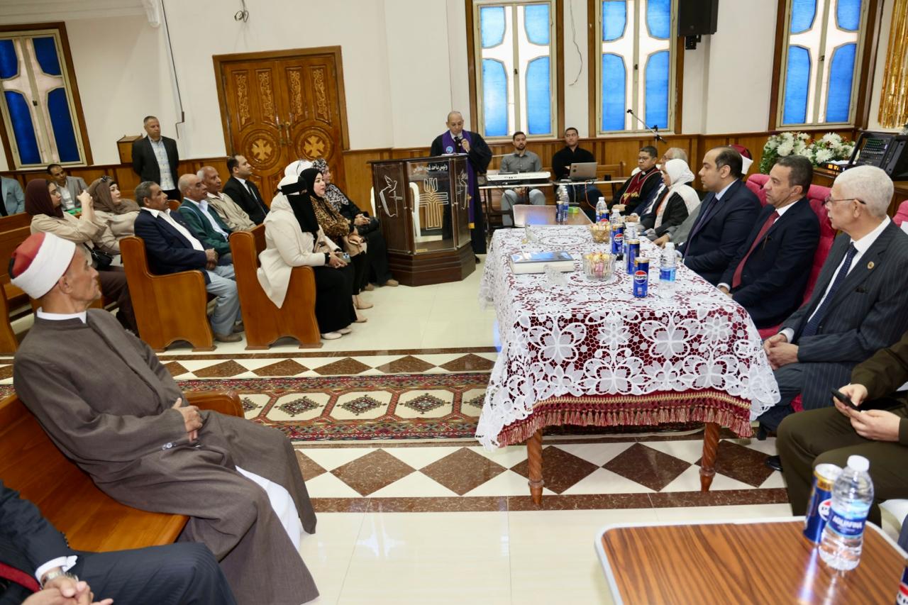 وقدم محافظ المنوفية خالص التهاني القلبية للقس رأفت لوقا ممثل الطائفة الإنجيلية بالمنوفية وراعي الكنيسة الإنجيلية بشبين الكوم وبركة السبع ورجال الكنيسة والأخوة الأقباط الإنجيليين من مواطني المحافظة بمناسبة عيد القيامة المجيد، وخلال زيارته أكد المحافظ علي قوة ومتانة العلاقة التي تربط جموع المصريين والتي تعد تجسيدا حقيقيا للوحدة والإخاء في ظل القيادة الحكيمة للرئيس عبد الفتاح السيسي رئيس الجمهورية متمنيا لجموع الشعب المصري دوام الأمن والرخاء.