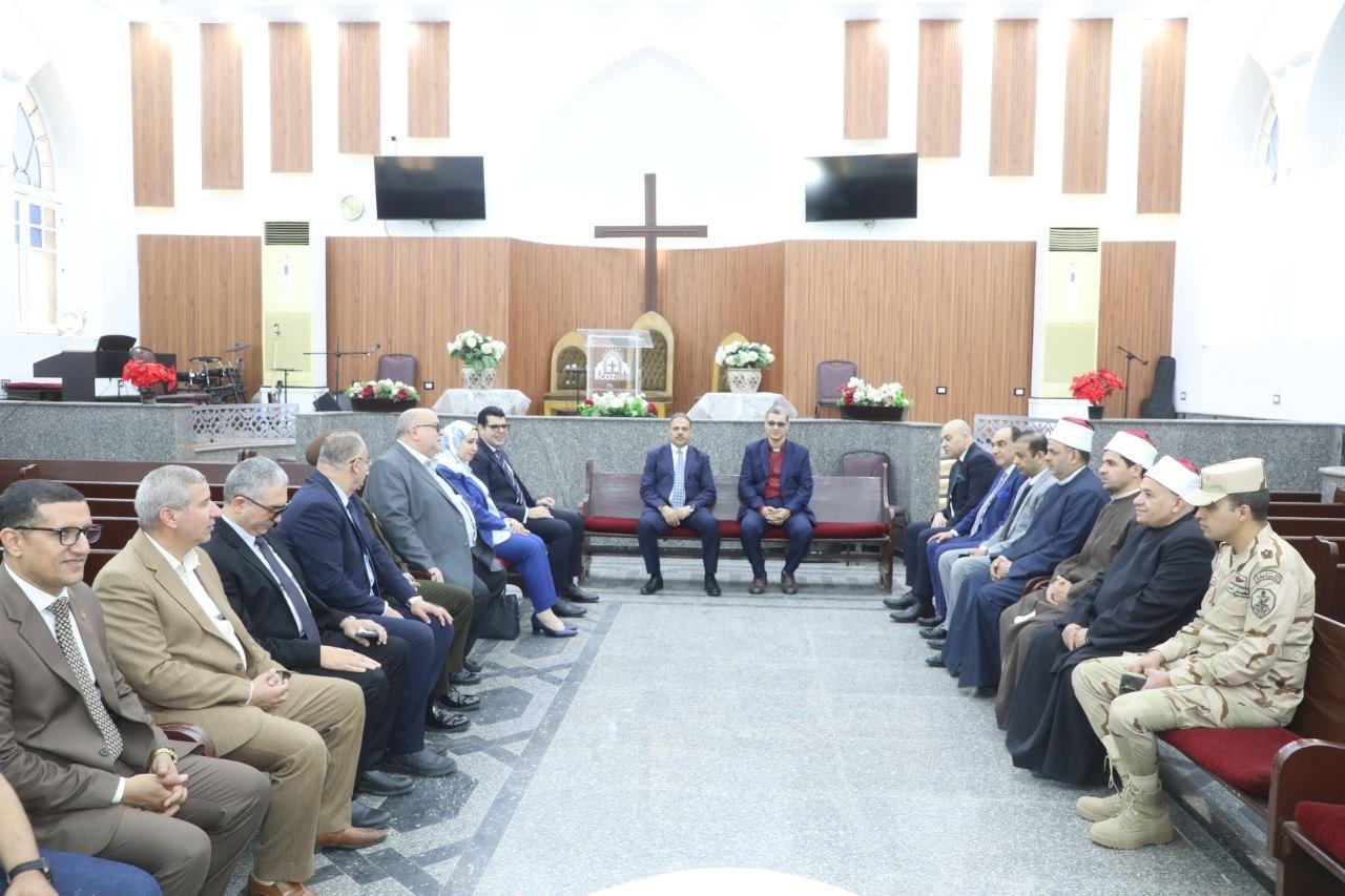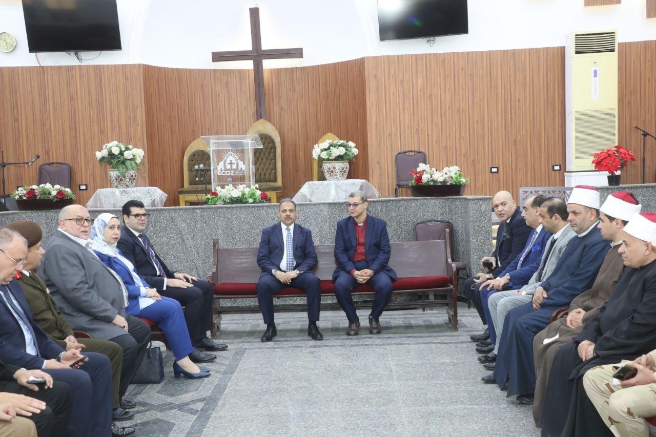ومن جانبه رحب راعي الكنيسة بزيارة المحافظ والوفد المرافق له، معربًا عن تقديره لهذه اللفتة الطيبة مؤكدًا أن رسالة الأديان السماوية للجميع هى نشر الحب والسلام فالنسيج الوطني المتماسك هو الدعامة الأساسية لبناء وتنمية الأوطان.