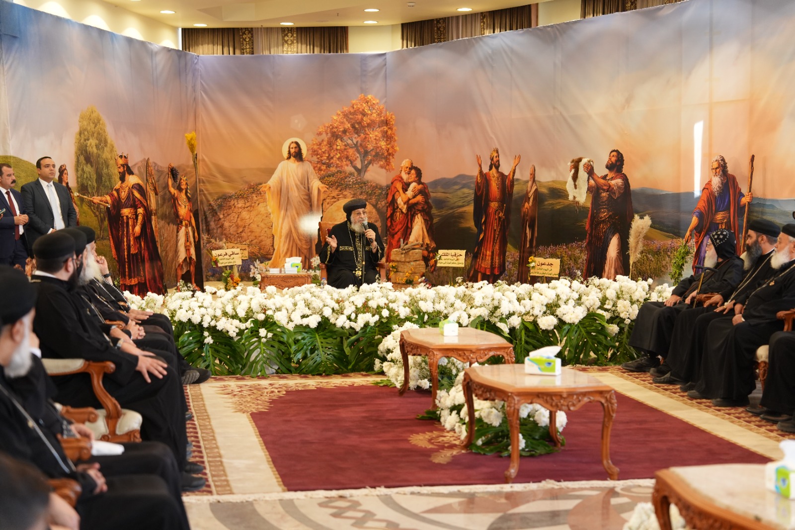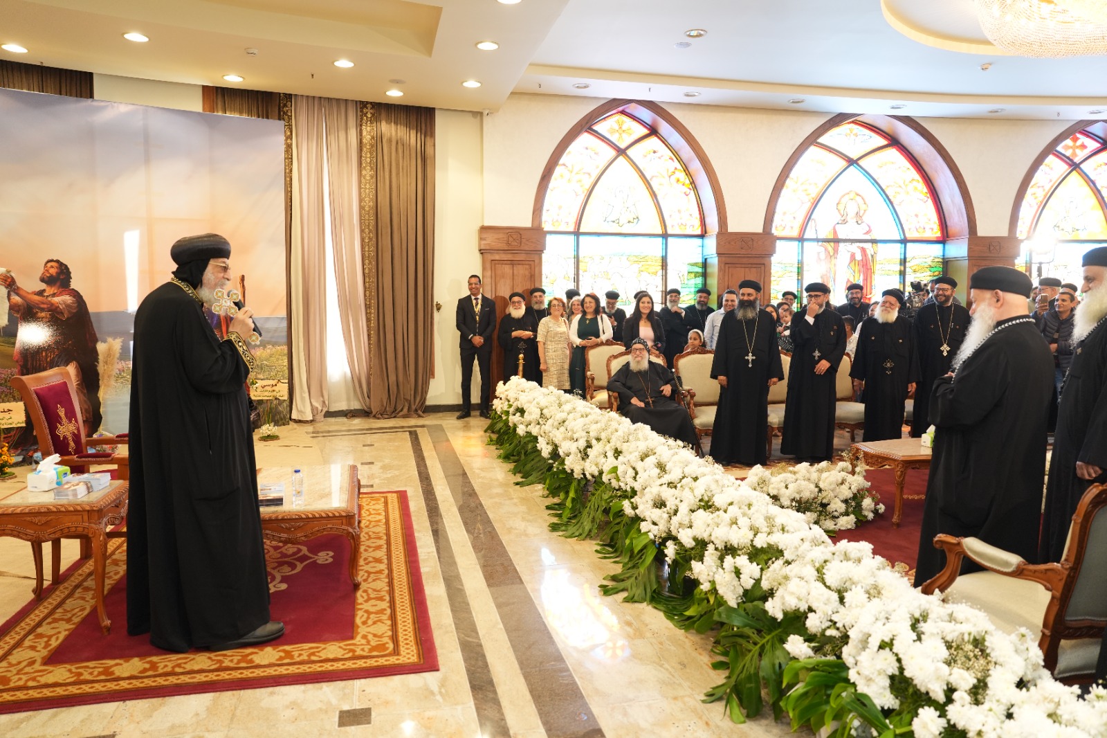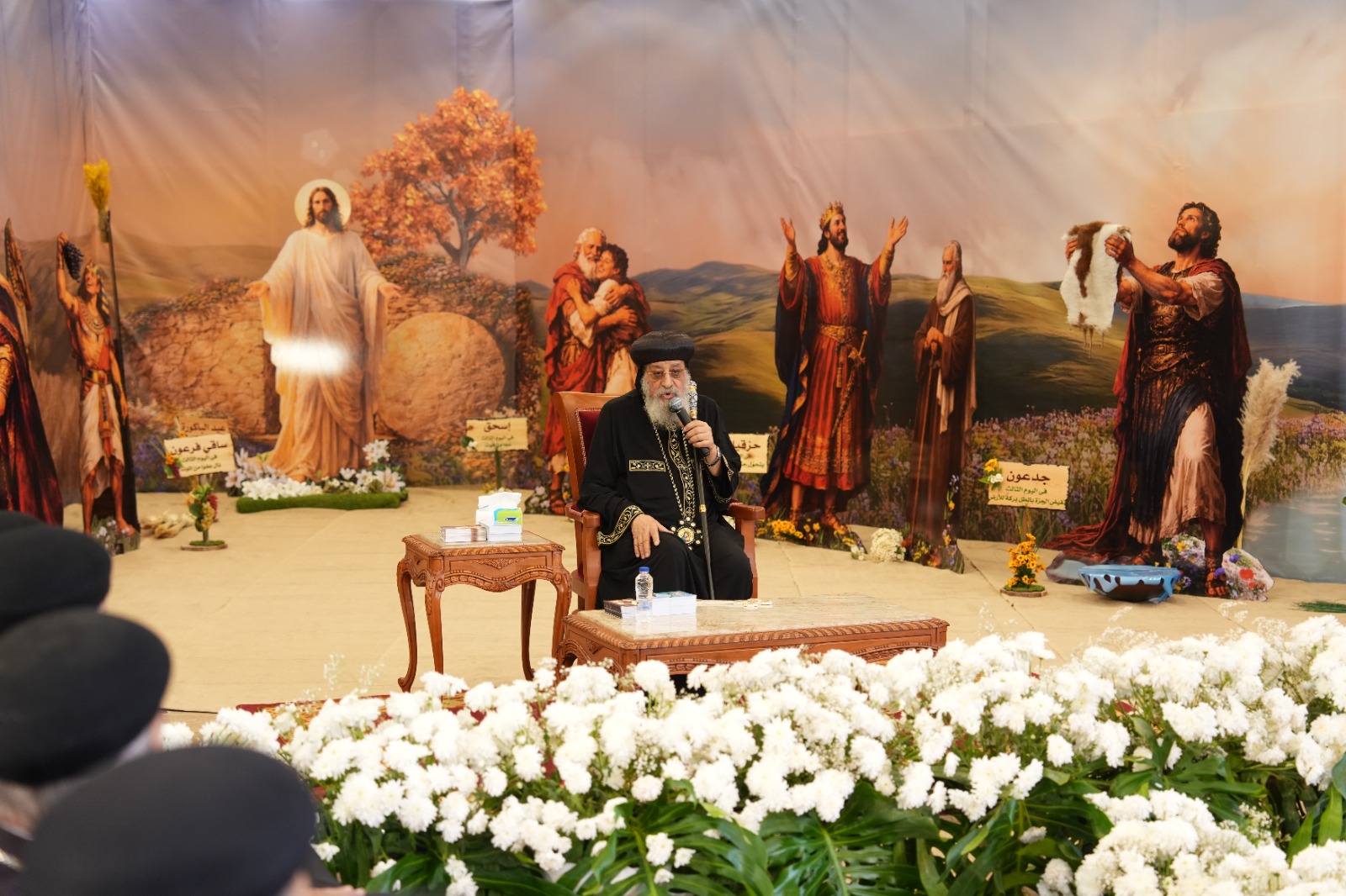 ولفت قداسته خلال حديثه إلى مهنئيه إلى أن عيد القيامة هو عيد الأعياد، نحتفل به لمدة خمسين يومًا وكأن هذه الخمسين يومًا يوم واحد ممتد، تبدأ بعيد (القيامة) وتنتهي بعيد (العنصرة). كما أننا نحتفل بالقيامة يوميًّا في صلاة باكر، ونحتفل بها أسبوعيًّا كل يوم أحد وشهريّا يوم ٢٩ من الشهر القبطي.