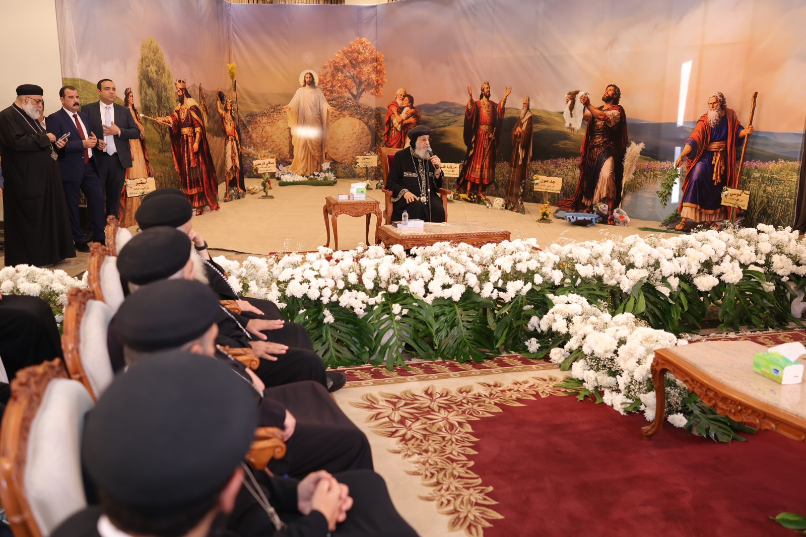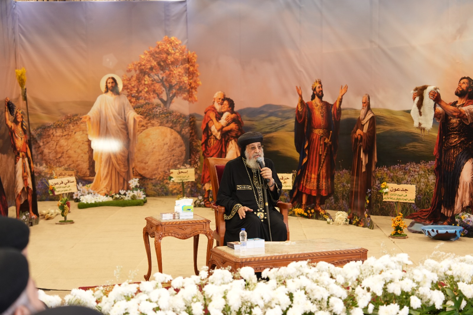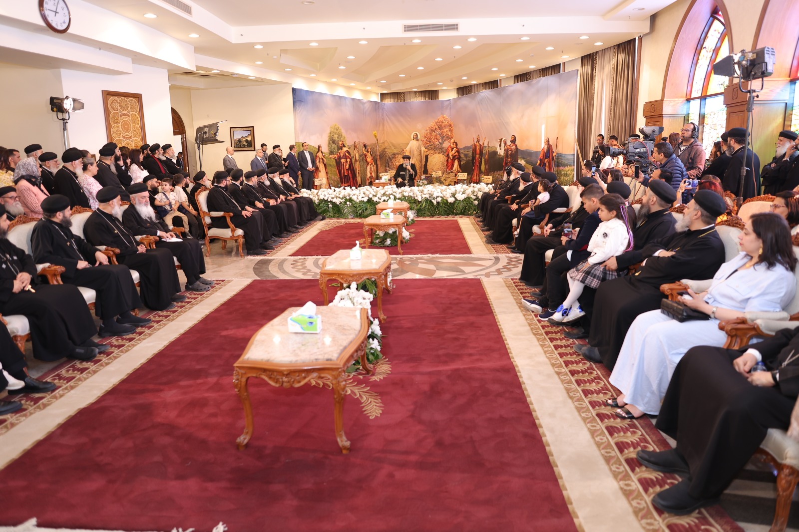 ولفت قداسته خلال حديثه إلى مهنئيه إلى أن عيد القيامة هو عيد الأعياد، نحتفل به لمدة خمسين يومًا وكأن هذه الخمسين يومًا يوم واحد ممتد، تبدأ بعيد (القيامة) وتنتهي بعيد (العنصرة). كما أننا نحتفل بالقيامة يوميًّا في صلاة باكر، ونحتفل بها أسبوعيًّا كل يوم أحد وشهريّا يوم ٢٩ من الشهر القبطي.