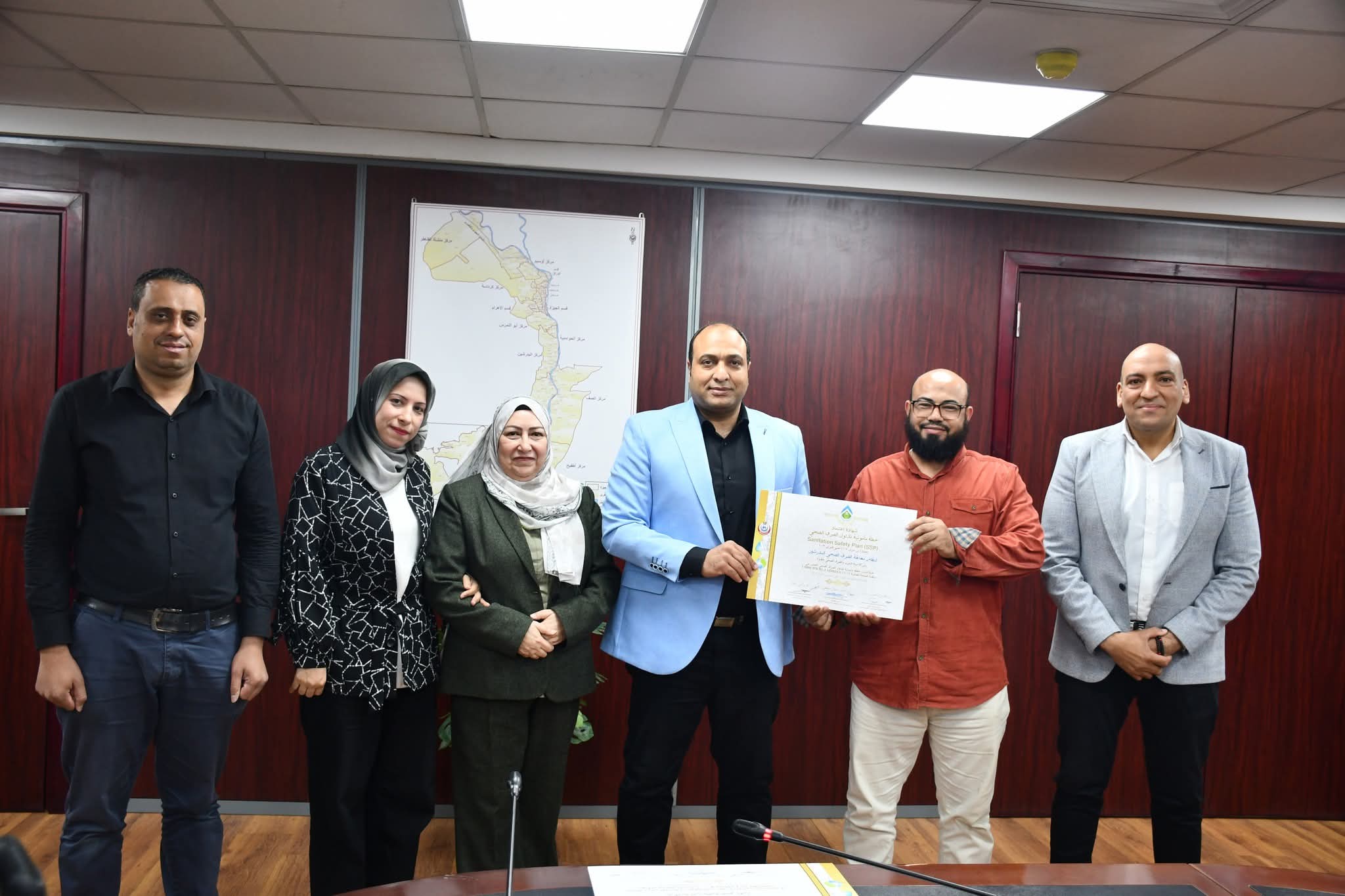 تسلم المهندس محمد حفناوي، رئيس شركة مياه الشرب والصرف الصحي بالجيزة، شهادات اعتماد خطة سلامة ومأمونية المياه لمحطة مياه الصف، وشهادة اعتماد مأمونية تداول الصرف الصحي لمحطة معالجة البدرشين.