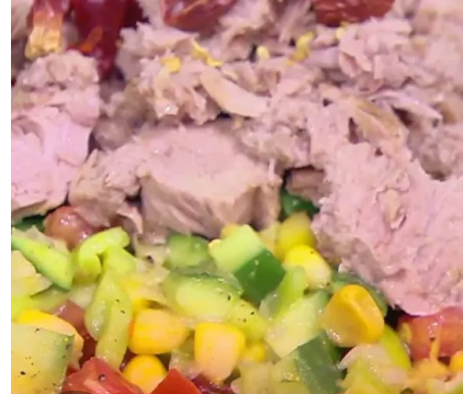 في بولة يوضع خس شرائح , مكعبات خيار , مكعبات طماطم , ذرة , فلفل رومى , تونة
