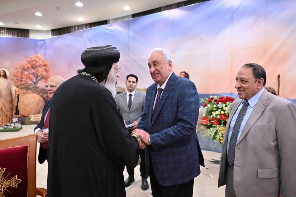 جاء للتهنئة الأب الربان فيلبس عيسى راعي الكنيسة السريانية بمصر، ووفود من أحزاب مستقبل وطن، وحماة وطن، المصري الديمقراطي، والعدل، والليبرالي المصري.