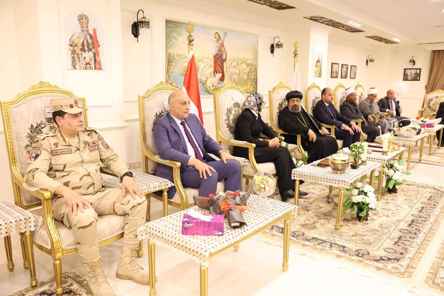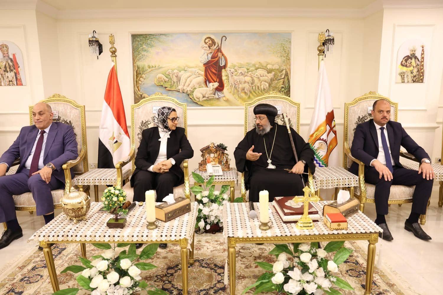 من جانبه، أعرب نيافة الأنبا أرسانيوس عن خالص شكره وتقديره لجميع الحضور على هذه الزيارة الكريمة والتهنئة الرقيقة، مؤكدًا أن الكنيسة تصلي من أجل أن يحفظ الله الوطن من الأزمات والمحن وأن يعين قيادتها على تحقيق الأمن والرخاء للشعب المصري العظيم.