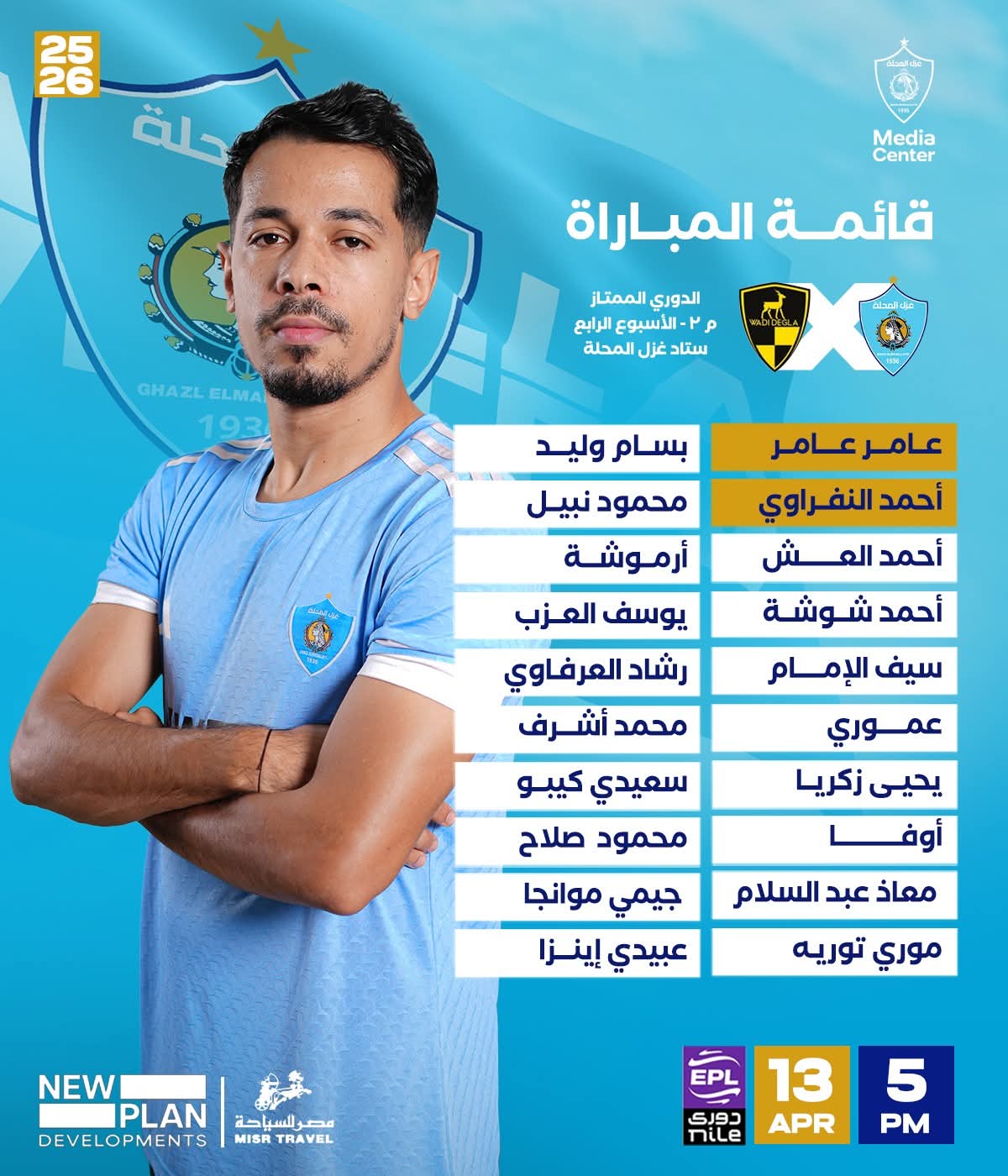 أعلن علاء عبد العال المدير الفني لفريق غزل المحلة قائمة فريقه لمواجهة وادي دجلة في مجموعة الهبوط ببطولة الدوري المصري.