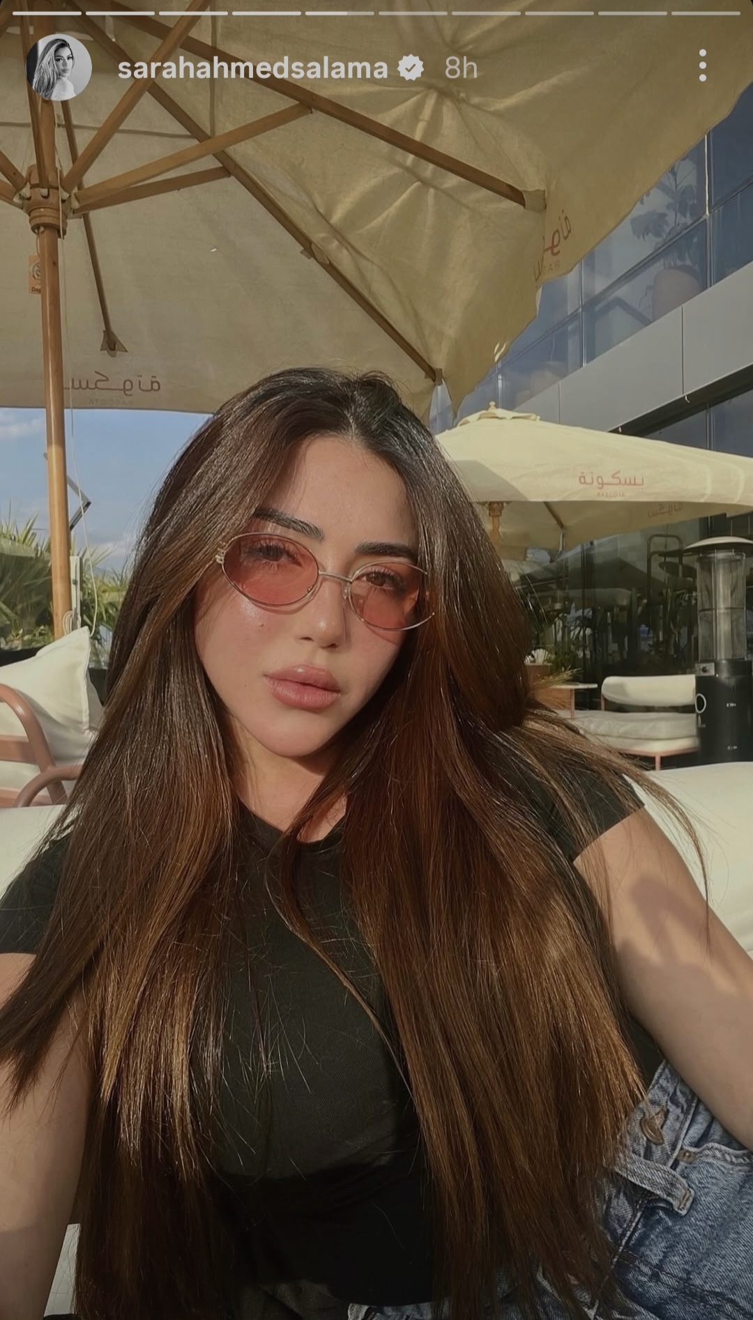 وظهرت سارة سلامه بإطلالة صيفية لافتة بالكاجوال مرتدية تيشيرت باللون الأسود ،مما حازت الصورة علي إعجاب و تفاعل متابعيها.