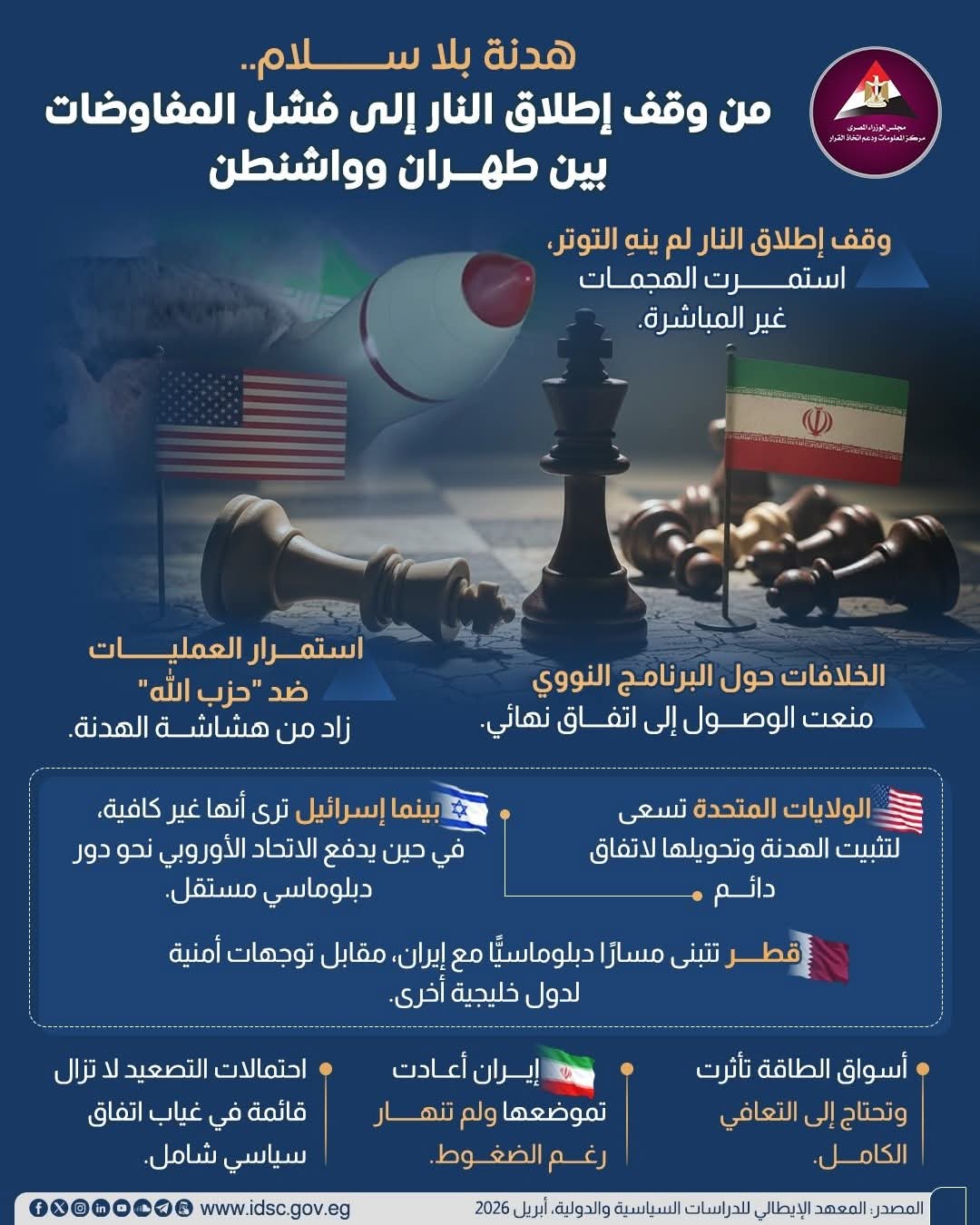 وأوضح الانفوحراف أنه رغم وقف إطلاق النار بين إيران والولايات المتحدة الأمريكية،لا تزال المنطقة تعيش على وقع توتر مستمر، مع غياب اتفاق نهائي وتصاعد الهجمات غير المباشرة.