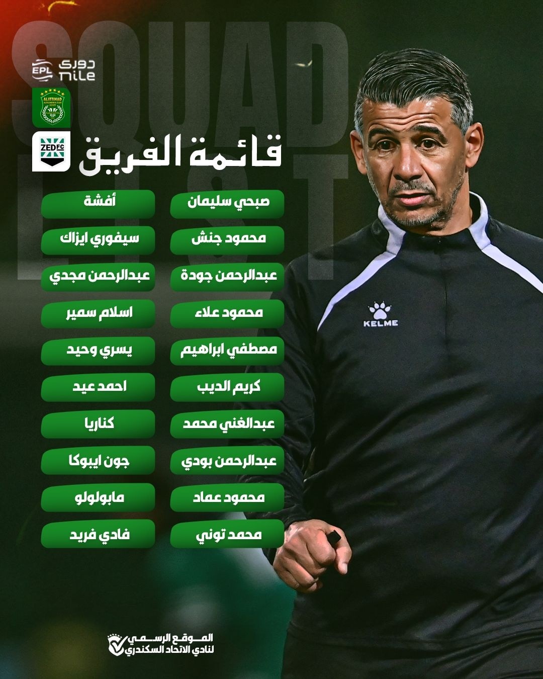 أعلن الجزائري ميلودي حمدي المدير الفني للاتحاد السكندري قائمة الفريق استعدادا لمواجهة زد غدا في اللقاء الذي يجمع بينهما ضمن مباريات الاسبوع الرابع من المرحلة النهائية لمسابقة الدوري الممتاز موسم 2025– 2026.