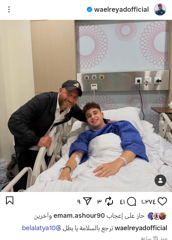 ونشر وائل رياض صورة له عبر حسابه الرسمي على موقع "إنستجرام" خلال الزيارة، وعلق قائلاً: "ترجع بالسلامة يا بطل"