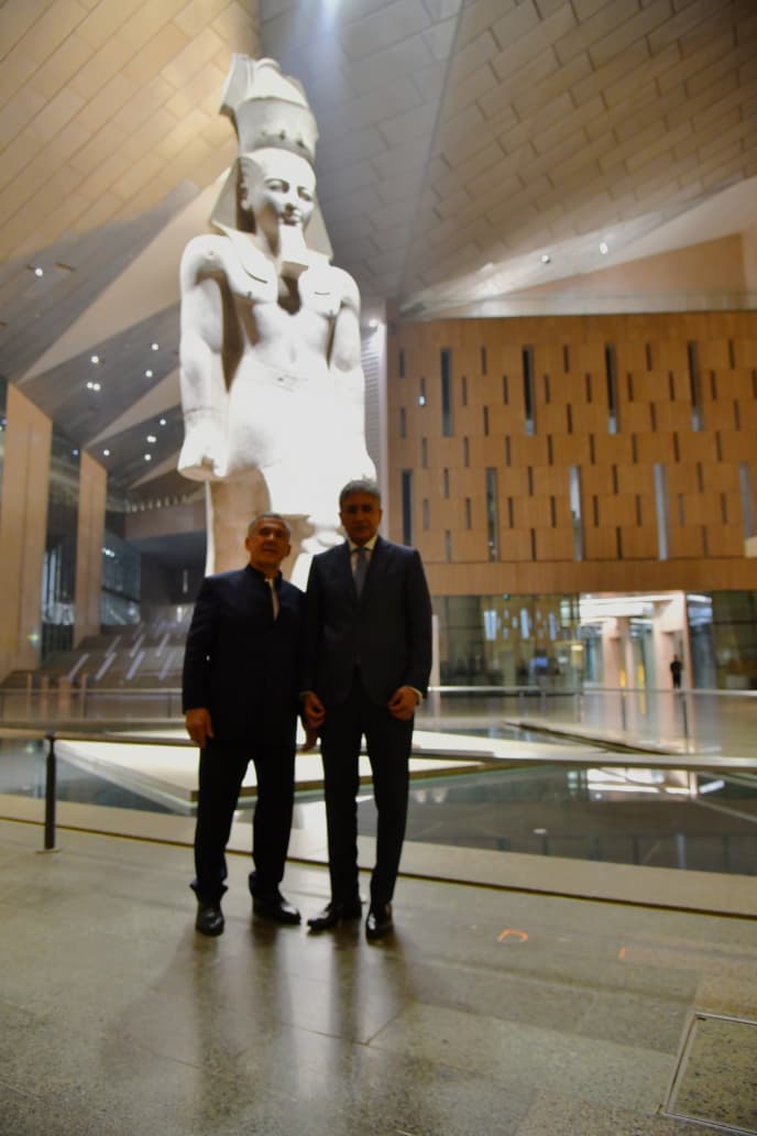 استقبل شريف فتحي، وزير السياحة والآثار، رستم منيخانوف رئيس جمهورية تتارستان، والوفد المرافق له، وذلك خلال زيارتهم الرسمية الحالية إلى مصر، حيث اصطحبهم الوزير في جولة داخل المتحف، بحضور الدكتور أحمد غنيم الرئيس التنفيذي لهيئة المتحف.