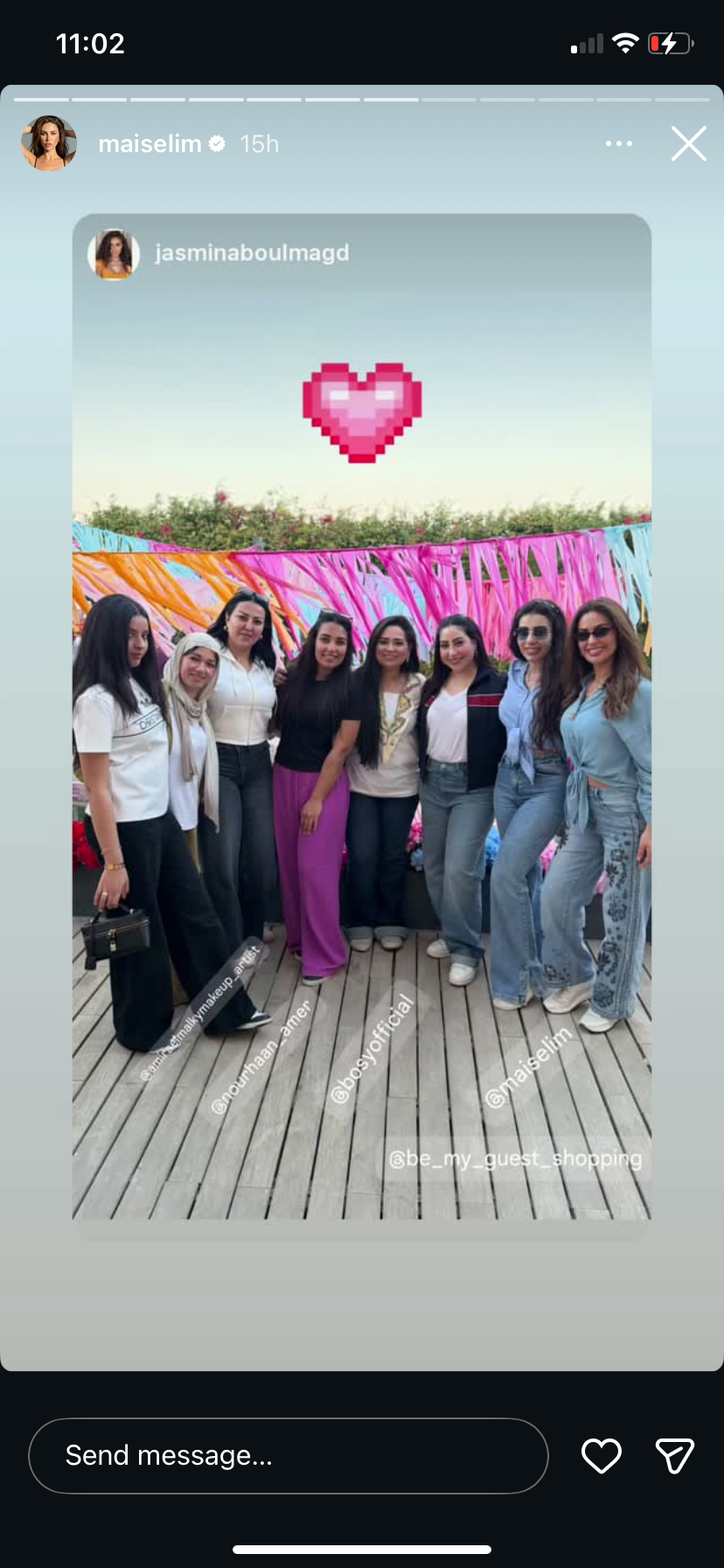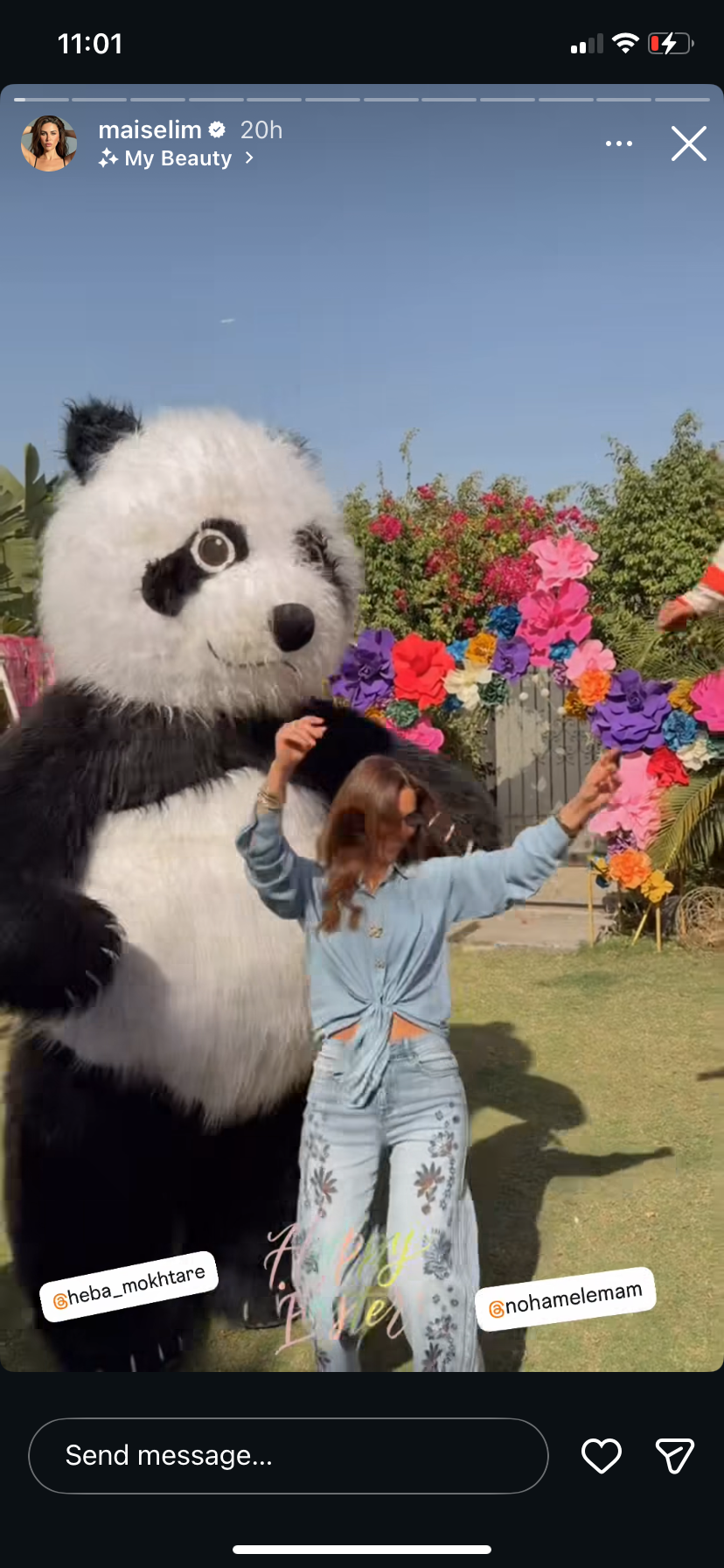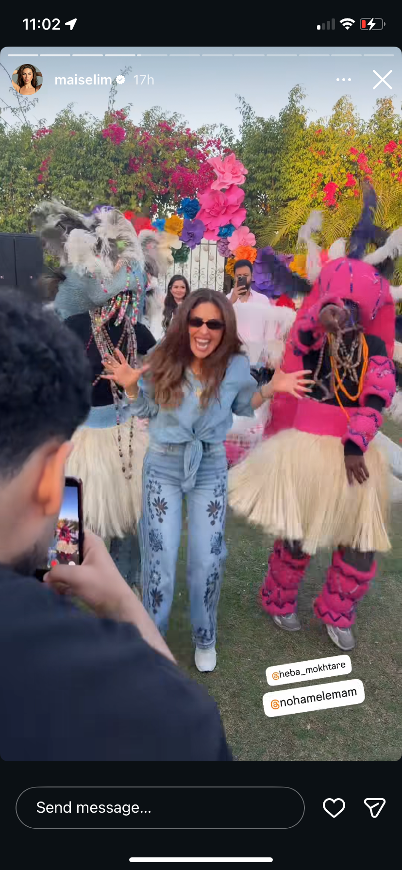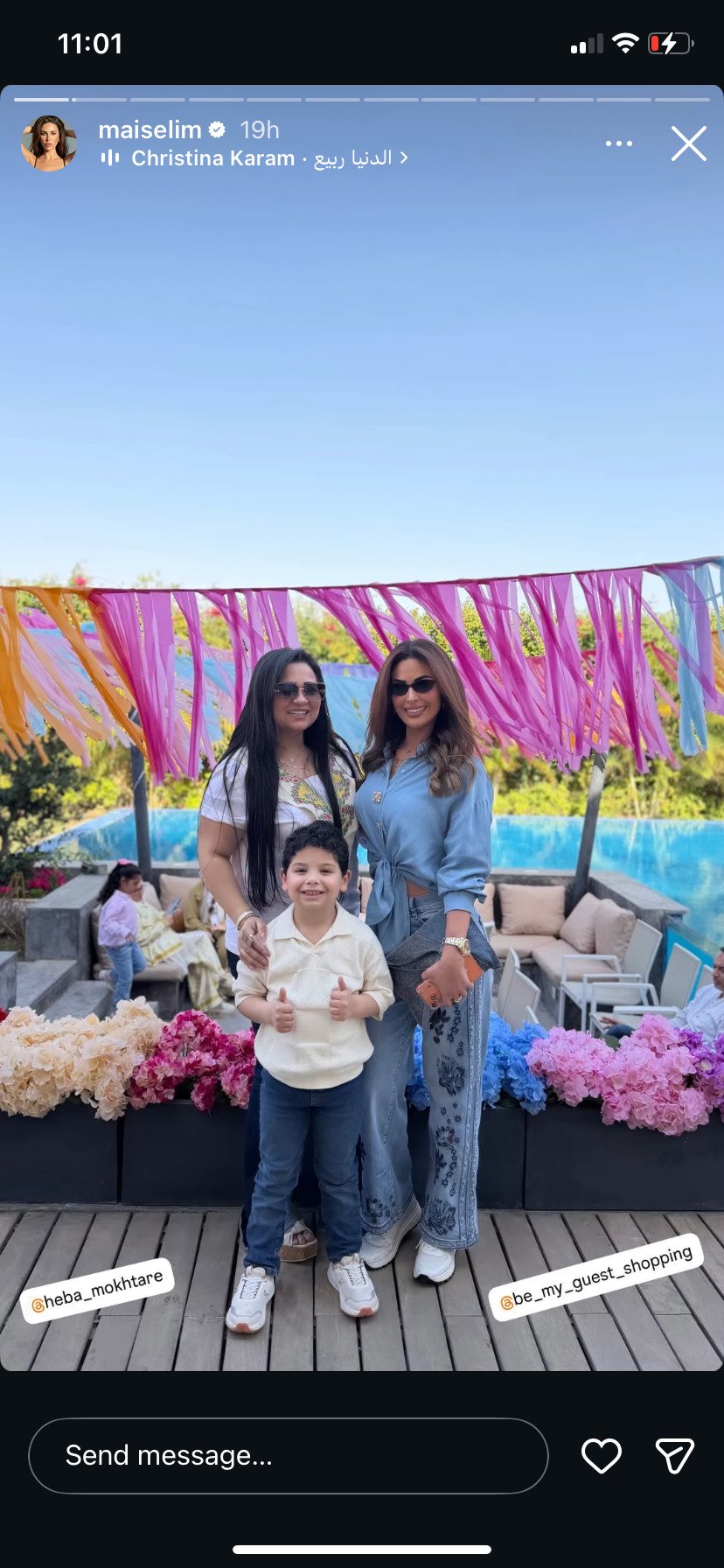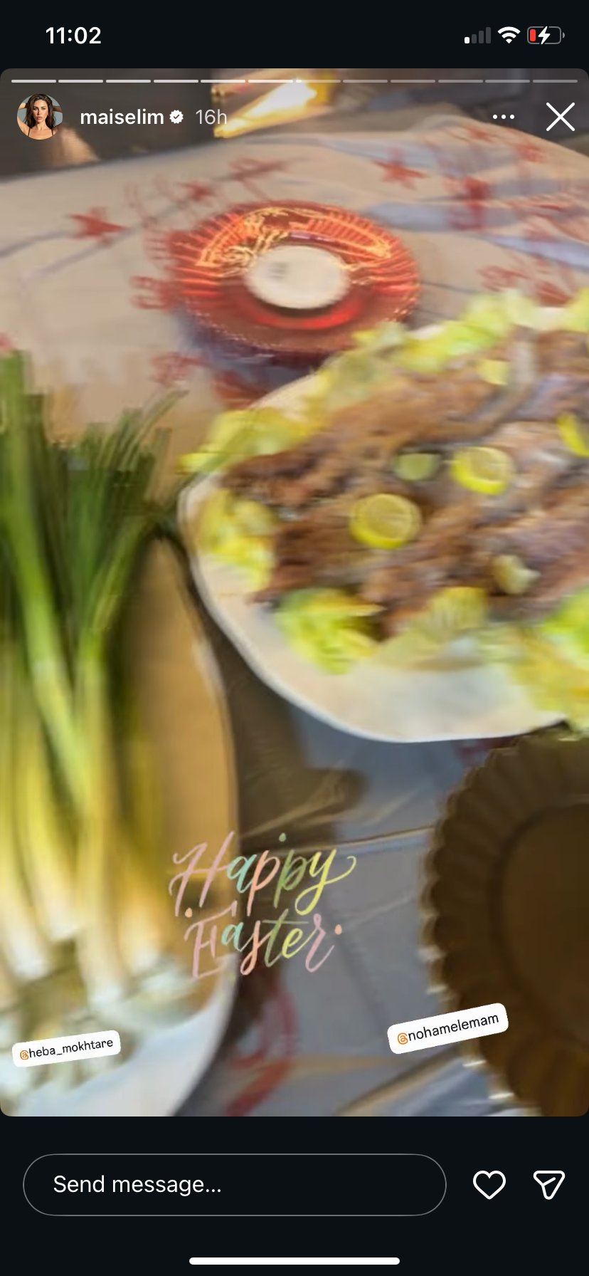ونشرت مي صورا ومقاطع فيديوهات عبر صفحتها الرسمية على موقع التواصل الاجتماعي "إنستجرام" ظهرت خلالها وهي ترقص وتغني وسط أجواء احتفالية مع الأهل والأصدقاء، وكتبت: "شم نسيم سعيد".