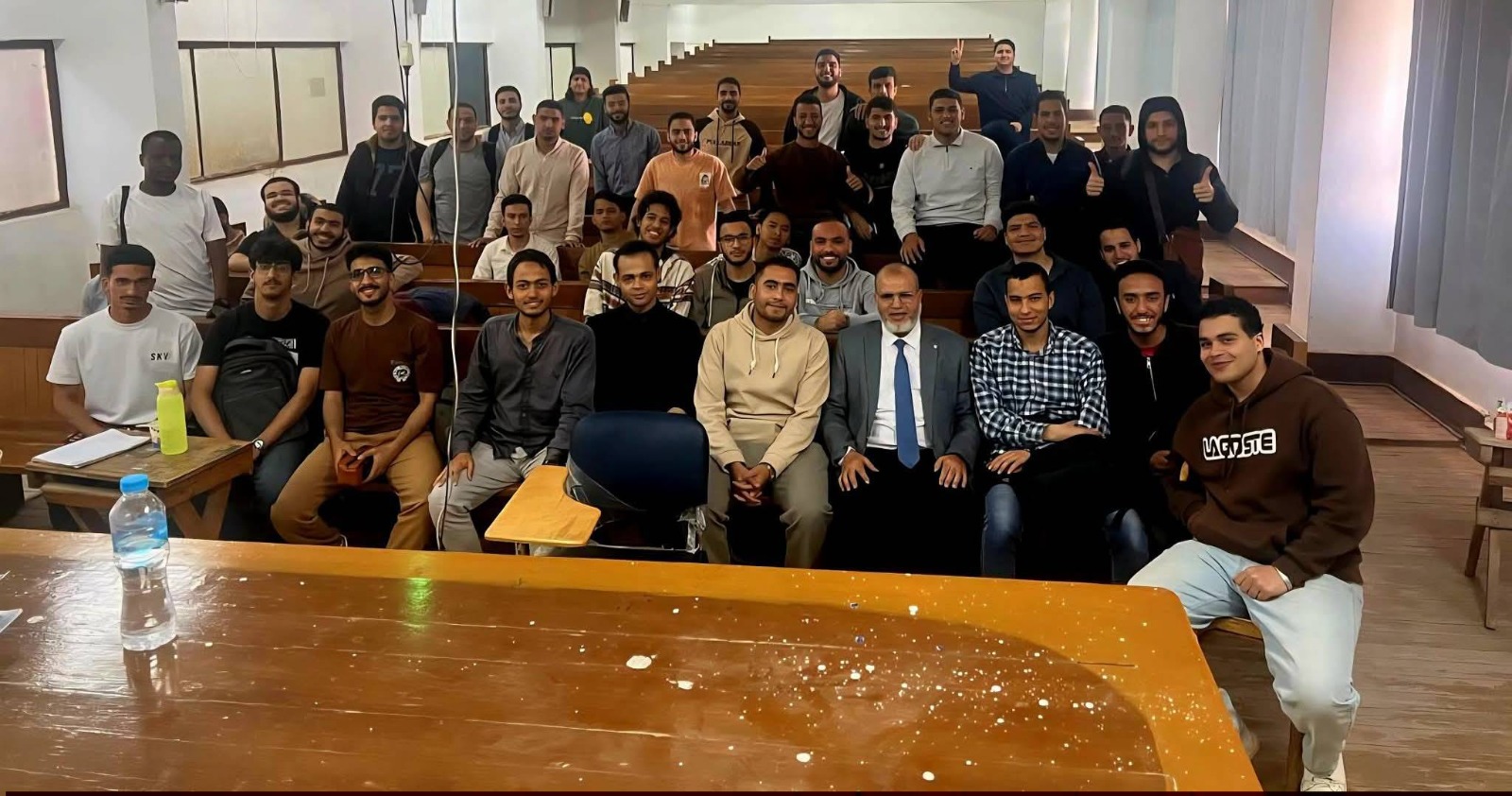 المشهد لم يخلُ من تواضع لافت، حيث يستقبل الدكتور طلابه برحابة صدر، وبلبّى رغبتهم في التقاط الصور معه، في أجواء إنسانية دافئة تعكس شخصية أستاذ يدرك أن بناء الإنسان لا يقل أهمية عن تعليمه.