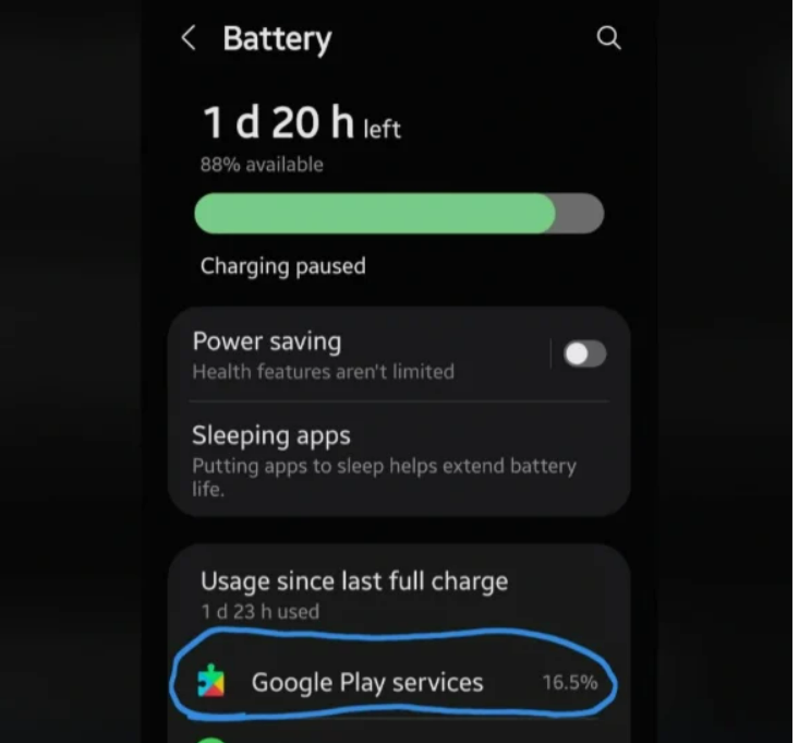 يُعتقد على نطاق واسع أن المشكلة مرتبطة بخدمات جوجل بلاي. تتولى هذه الخدمة مهامًا مهمة مثل مزامنة التطبيقات، وتتبع الموقع، والعمليات التي تعمل في الخلفية. وتشير التقارير إلى أنها قد تعمل بشكل غير طبيعي في الخلفية، مما يتسبب في تنبيه وحدة المعالجة المركزية بشكل متكرر وزيادة استهلاك الطاقة.