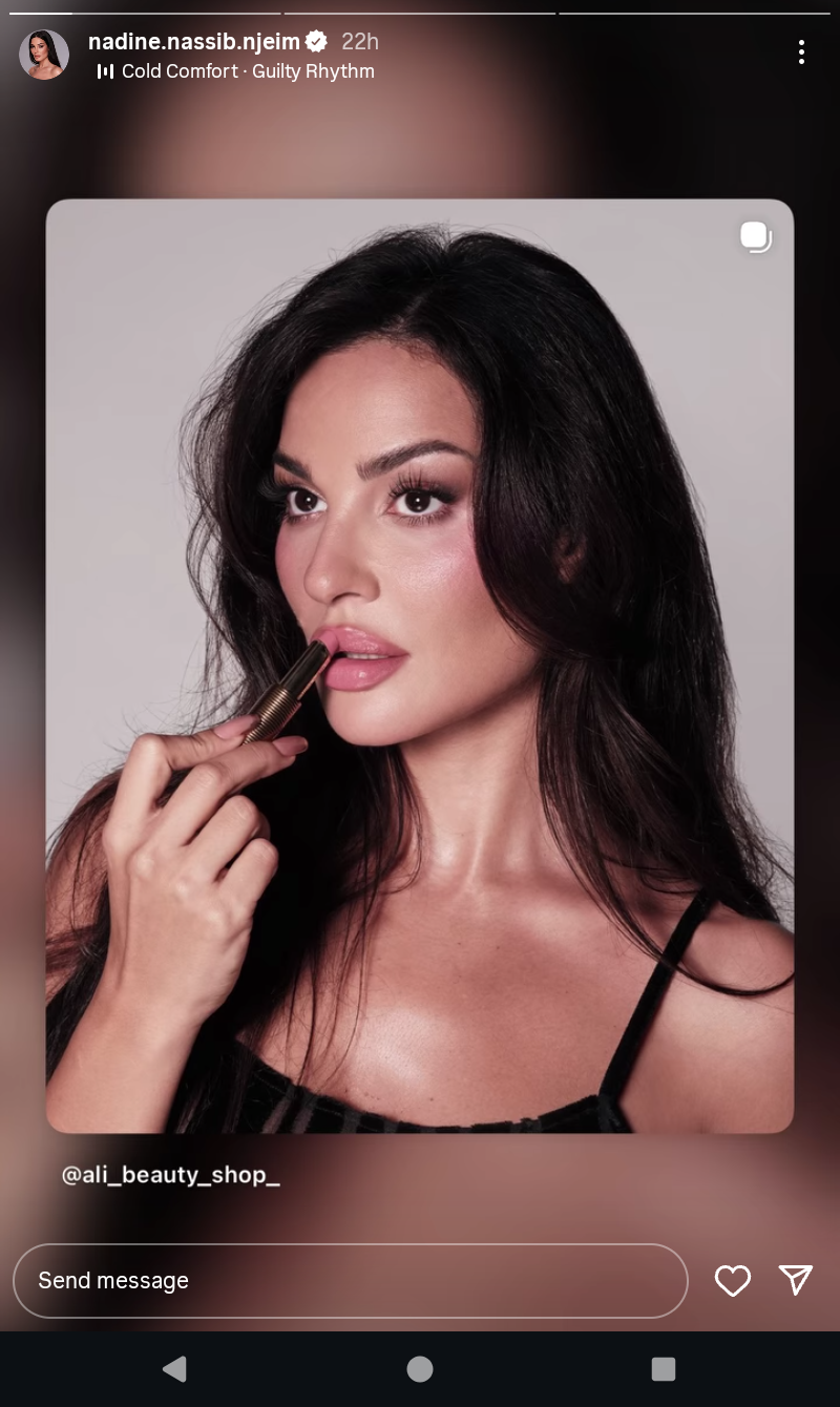 شاركت الفنانة نادين نسيب صورة جديدة لها عبر صفحتها على موقع التواصل الاجتماعي إنستجرام خلال خاصية الاستوري.
