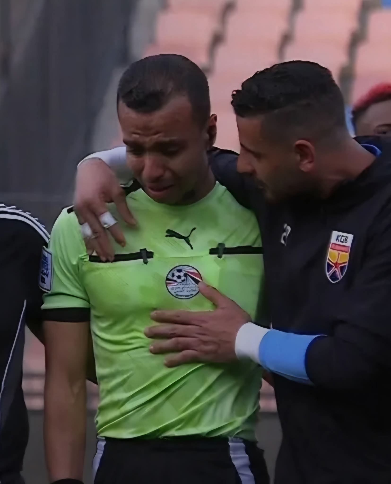 حالة من الحزن سيطرت على مصطفى الشهدي حكم مباراة مودرن سبورت والجونة عقب تعرضه للإصابة خلال المباراة التي اقيمت على ستاد القاهرة ضمن منافسات الجولة الرابعة لمجموعة الهبوط بالدوري المصري.