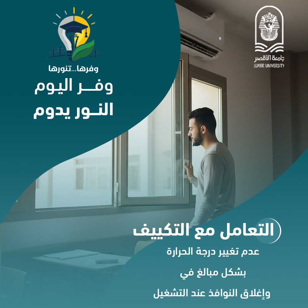 كما قامت الجامعة بـ تنظيم استخدام أجهزة التكييف داخل القاعات الدراسية، من خلال ضبط درجات الحرارة على المعدلات المناسبة، والتوسع في استخدام المراوح كبديل أكثر ترشيدًا للطاقة كلما أمكن.