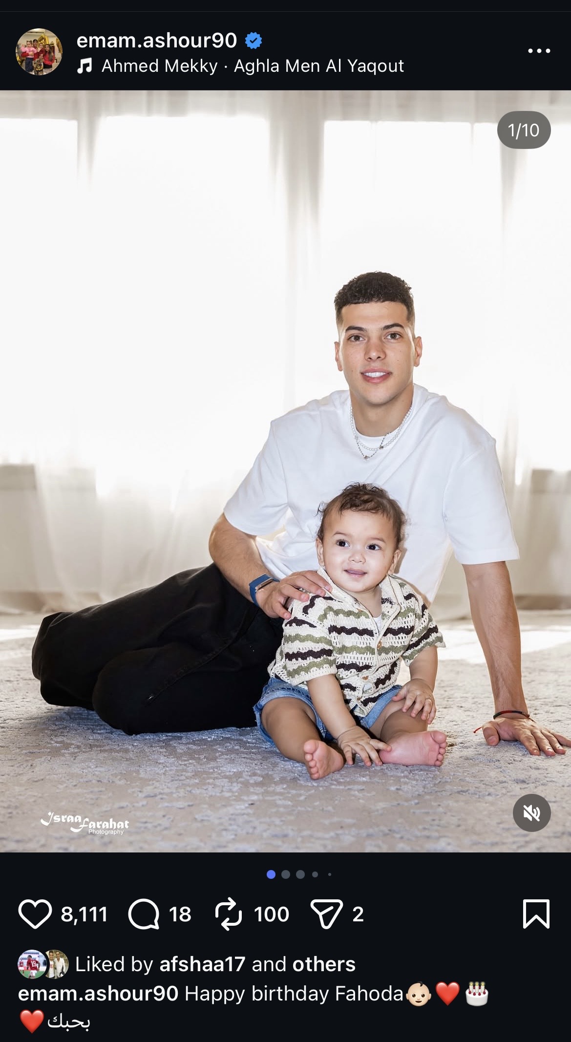 احتفل إمام عاشور، لاعب النادي الأهلي بعيد ميلاد نجله فهد، وشارك صورًا تجمعهم عبر حسابه على انستجرام.