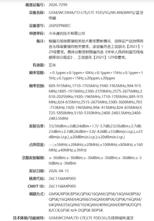 يتصدر هاتف Xiaomi 17 Max عناوين الأخبار مجدداً، فقد اجتاز جهاز جديد من Xiaomi، يحمل رقم الطراز 2605EPN8EC، شهادة SRRC الصادرة عن وزارة الصناعة وتكنولوجيا المعلومات الصينية.