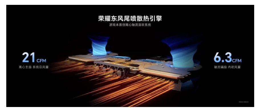 بحسب بيانات اختبار شركة Honor، يدفع النظام تدفق هواء داخليًا يتجاوز 6.3 قدم مكعب في الدقيقة، بينما يتجاوز إجمالي تدفق الهواء في النظام 21 قدم مكعب في الدقيقة. كما عملت الشركة على تصغير مكونات المروحة، وخفض حجم المحرك إلى حوالي 10 ملم مع رفع سرعة الدوران إلى أكثر من 20000 دورة في الدقيقة.