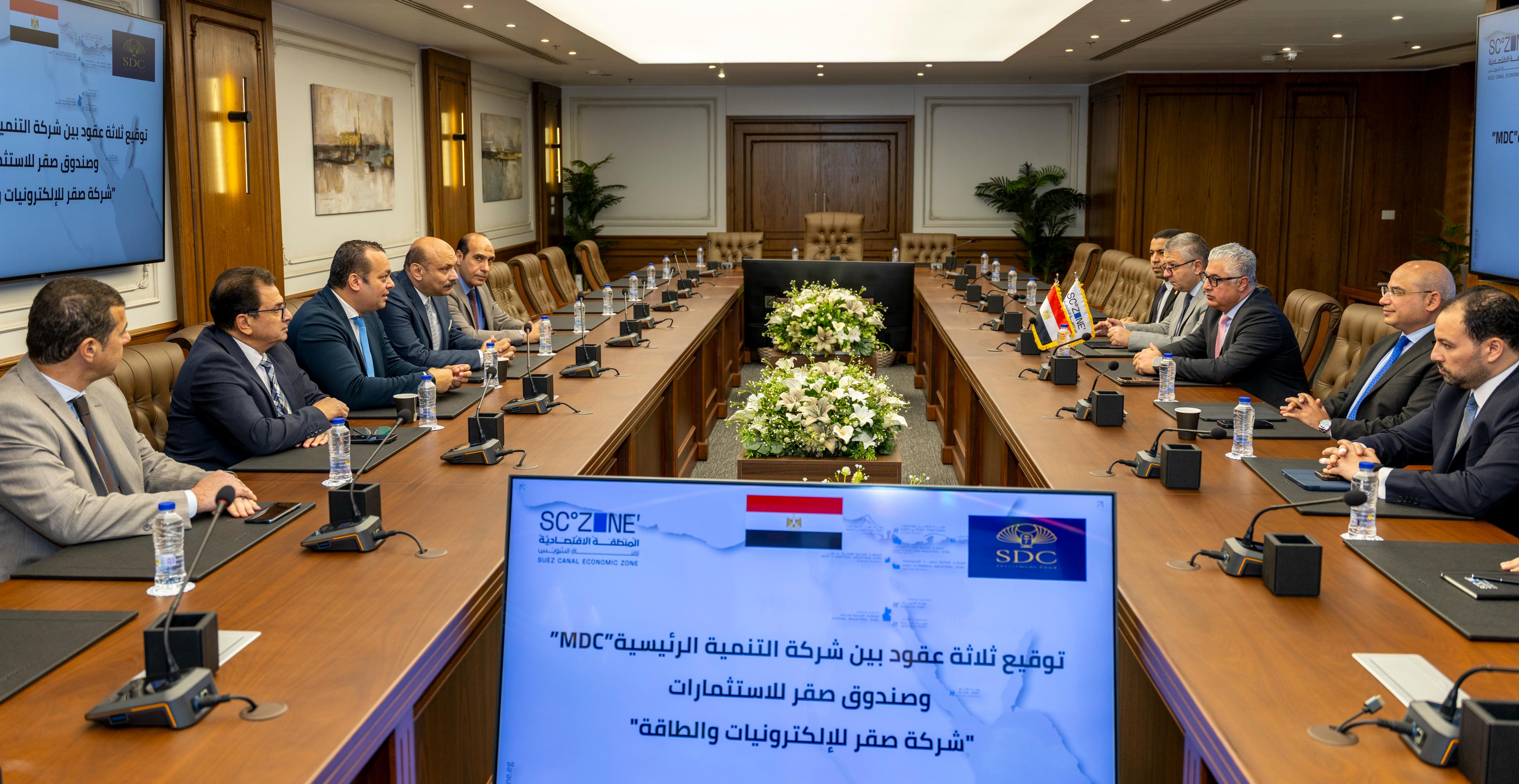شهد وليد جمال الدين، رئيس الهيئة العامة للمنطقة الاقتصادية لقناة السويس، اليوم، بمقر الهيئة بالعاصمة الجديدة، مراسم توقيع عقود 3 مشاريع جديدة لشركة صقر للإلكترونيات والطاقة (صندوق SDC للاستثمار) داخل نطاق المطور الصناعي التابع للهيئة (شركة التنمية الرئيسية- MDC) بمنطقة السخنة الصناعية المتكاملة؛ وهو مجمع متخصص في تصميم وتصنيع التقنيات المستخدمة في المعامل الهندسية والطبية، وقطاع الصناعات المكملة للطاقة المتجددة، بالإضافة لتنفيذ معمل بحثي صناعي متقدم يساهم في نقل و توطين التكنولوجيا في المجالات المستهدفة للتصدير؛ ويقع المجمع المكون من ثلاثة مشروعات متنوعة على مساحة إجمالية قدرها 22 ألف متر مربع، بإجمالي تكاليف استثمارية للمشروعات الثلاثة بلغت 18 مليون دولار (تعادل نحو 940 مليون جنيه)، كما تتيح هذه المشروعات مجتمعة نحو 500 فرصة عمل مباشرة، ومن المقرر أن يبدأ التشغيل المتزامن لتلك المشاريع مطلع عام 2027، وتستهدف المشروعات مجتمعة تحقيق صادرات تكنولوجية بقيمة 20 مليون دولار سنويًّا، هذا وقد قام بتوقيع العقود الثلاثة كل من: اللواء وليد يوسف، العضو المنتدب لشركة MDC، و أحمد صقر، مدير صندوق SDC للاستثمار.