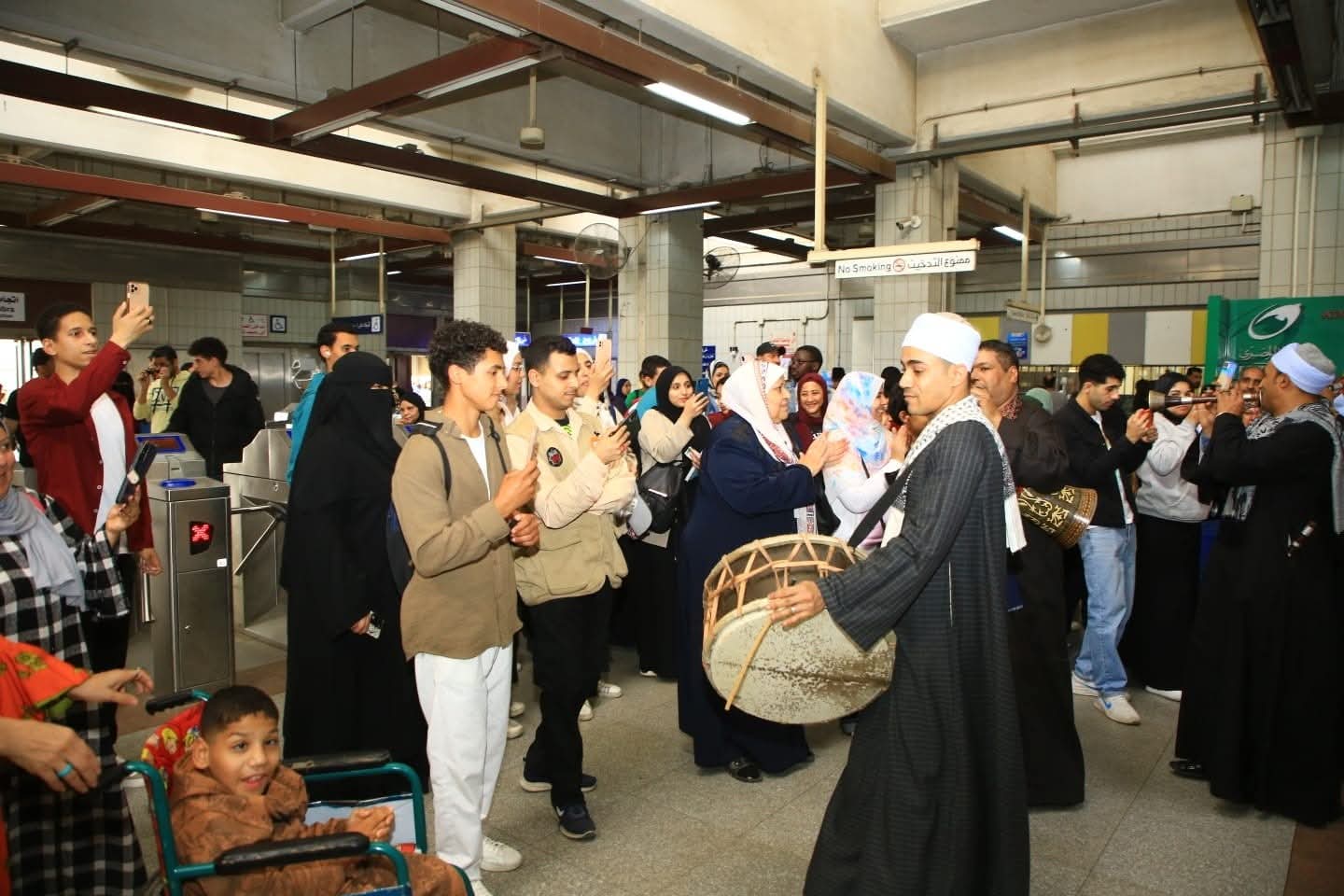 وقد أُقيمت الاحتفالية مساء اليوم الأربعاء الموافق 15 إبريل 2026 داخل أروقة محطة مترو جامعة القاهرة، حيث شملت فقرات غنائية مميزة، إلى جانب عروض المزمار البلدي والفلكلور الصعيدي، والتي لاقت تفاعلًا كبيرًا من جمهور الركاب المتواجدين بالمحطة، الذين أعربوا عن سعادتهم وإعجابهم بهذه المبادرة التي تعكس روح التراث المصري الأصيل داخل مرافق النقل الجماعي.