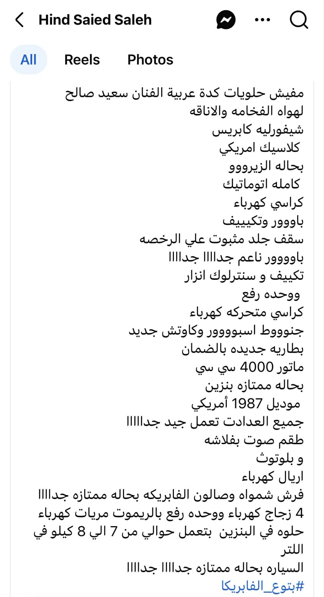 نفت هند ابنة الفنان الراحل سعيد صالح، تداول إعلان لبيع سيارة زعم بائعها أنها ملك الفنان سعيد صالح.